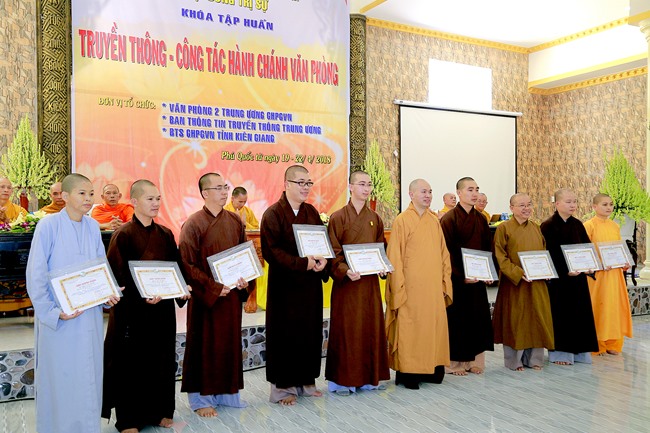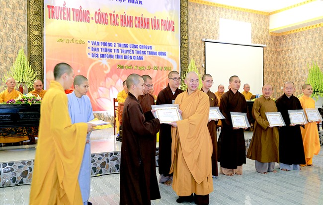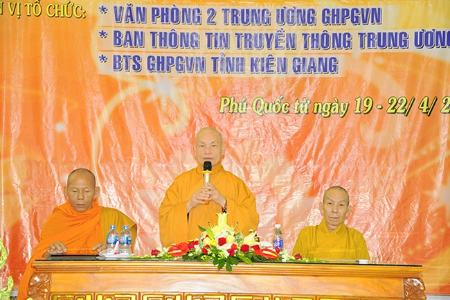 Theo đó, HT Thích Thiện Nhơn – Chủ tịch HĐTS T.Ư GHPGVN đã truyền dạy bảy chữ vàng cho người làm truyền thông Phật giáo, đó là TÂM TRONG, TRÍ SÁNG, NGÒI BÚT THÉP.