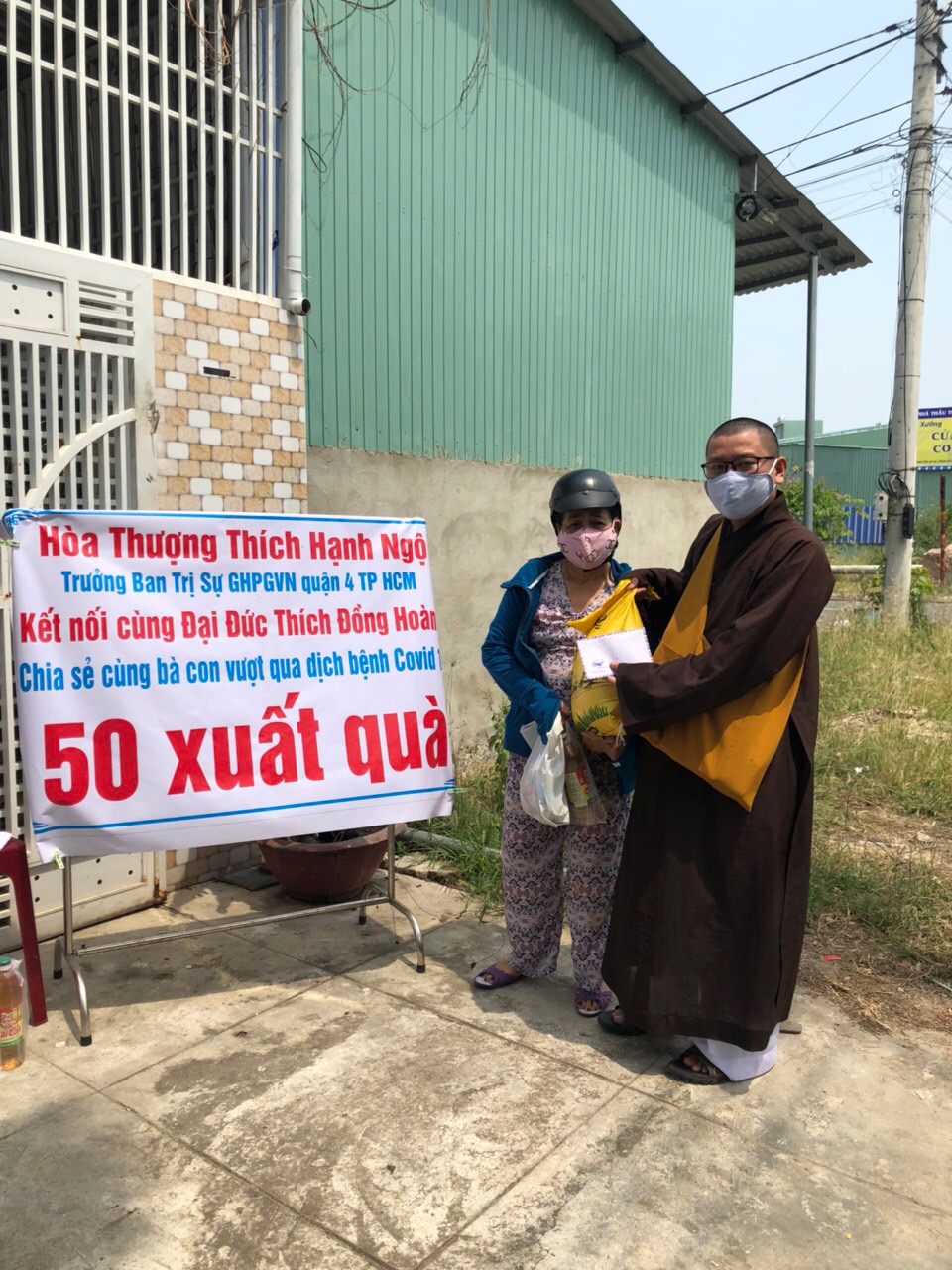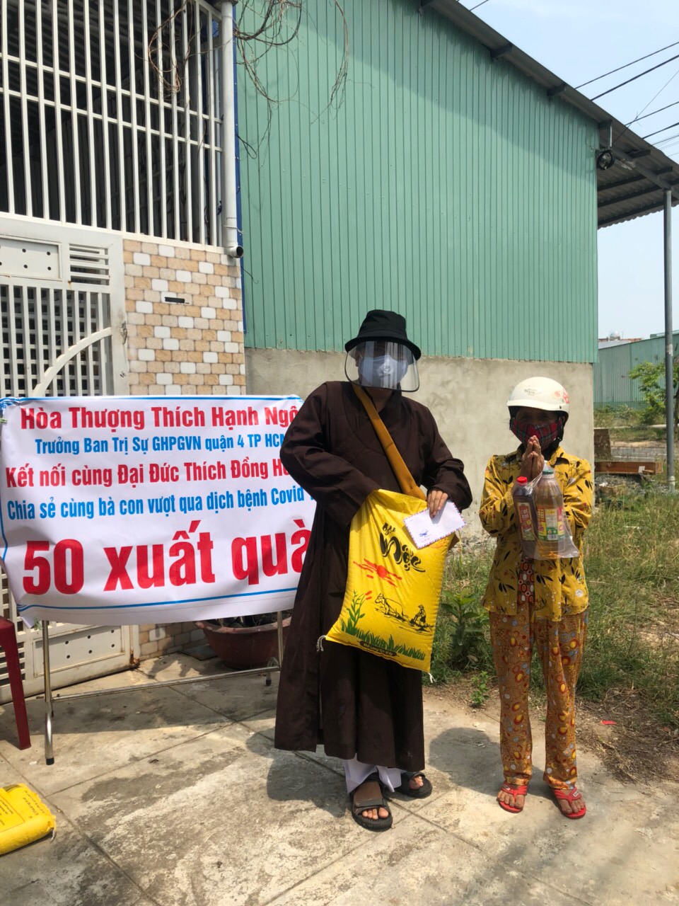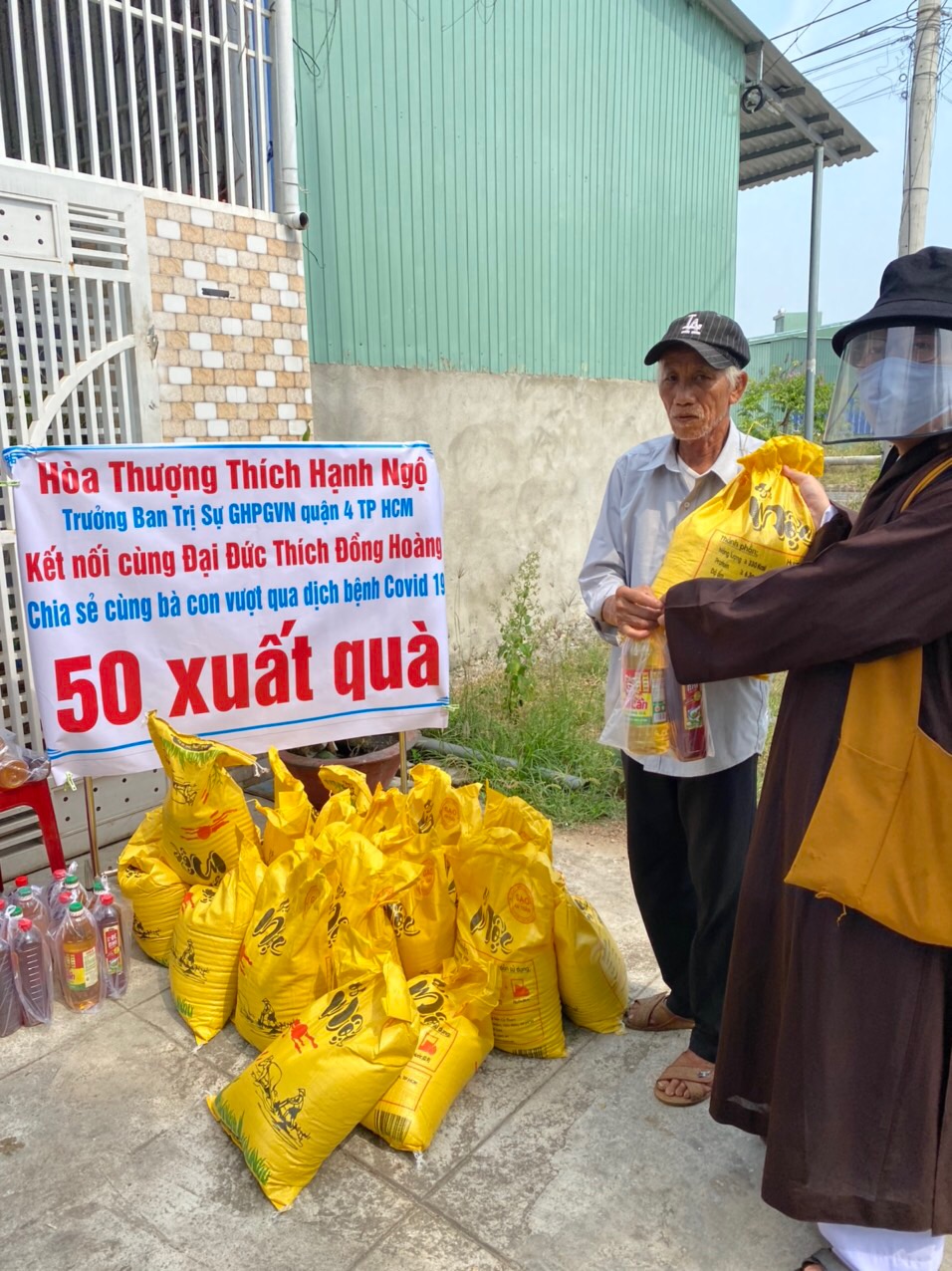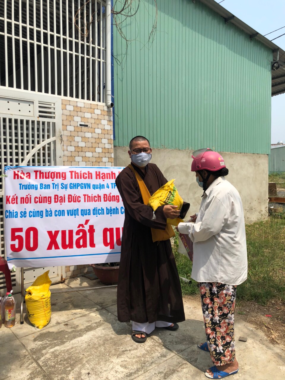 Thể hiện tinh thần từ bi của đạo Phật , hiểu được sự khó khăn của bà con những ngày cách ly xã hội theo chỉ thị 16 của chính phủ nhằm quyết liệt đẩy lùi dịch bệnh Covid 19, Hoà Thượng Thích Hạnh Ngộ – Phó trưởng Ban Thường trực Ban Tăng Sự GHPGVN TP Hồ Chí Minh , Trưởng BTS GHPGVN Quận 4 , trụ trì chùa Đức Quang cùng tăng chúng bổn tự đã làm nhiều chương trình thiện nguyện chia sẻ đến bà con chung tay chống Dịch .