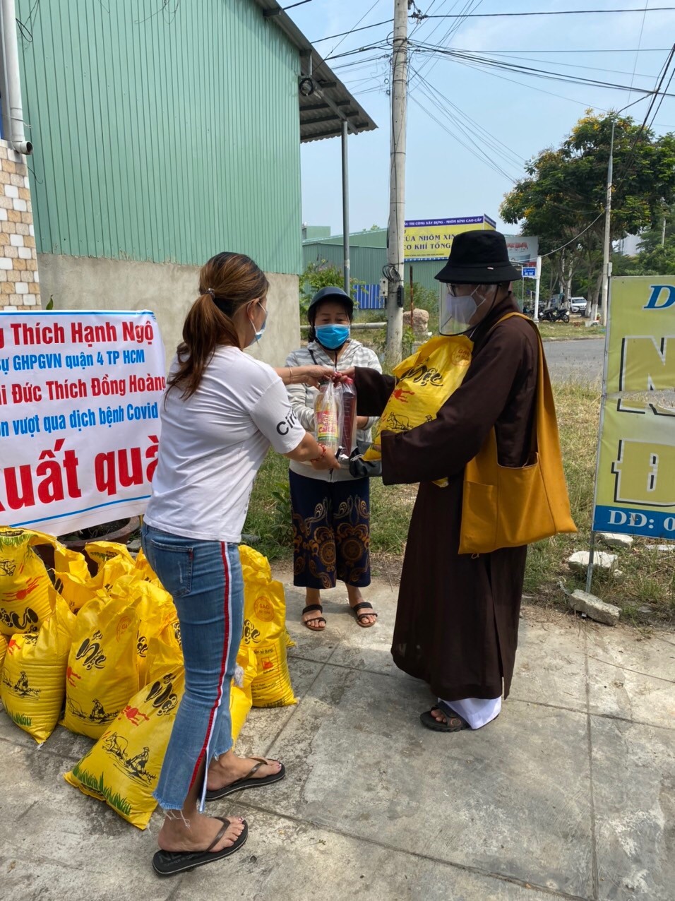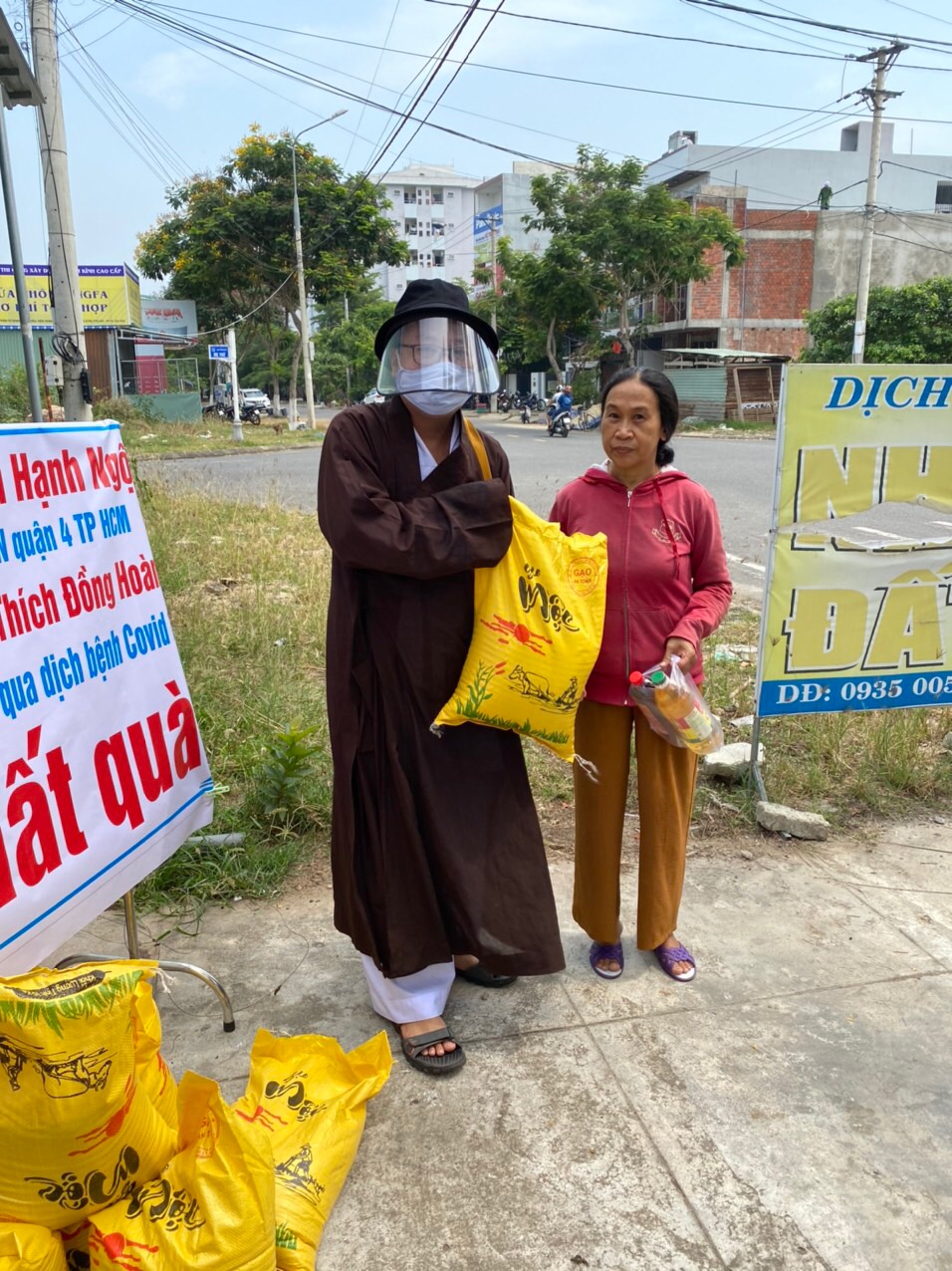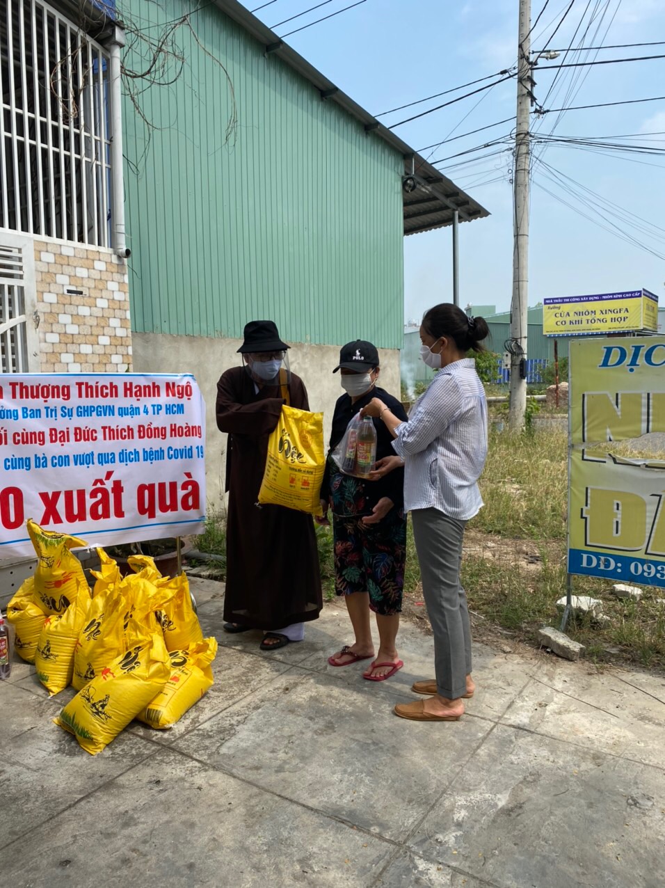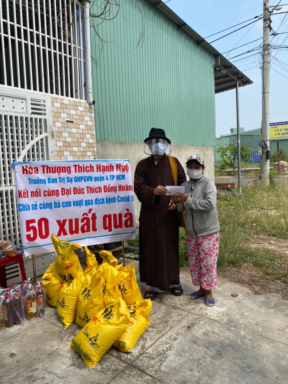 Thể hiện tinh thần từ bi của đạo Phật , hiểu được sự khó khăn của bà con những ngày cách ly xã hội theo chỉ thị 16 của chính phủ nhằm quyết liệt đẩy lùi dịch bệnh Covid 19, Hoà Thượng Thích Hạnh Ngộ – Phó trưởng Ban Thường trực Ban Tăng Sự GHPGVN TP Hồ Chí Minh , Trưởng BTS GHPGVN Quận 4 , trụ trì chùa Đức Quang cùng tăng chúng bổn tự đã làm nhiều chương trình thiện nguyện chia sẻ đến bà con chung tay chống Dịch .