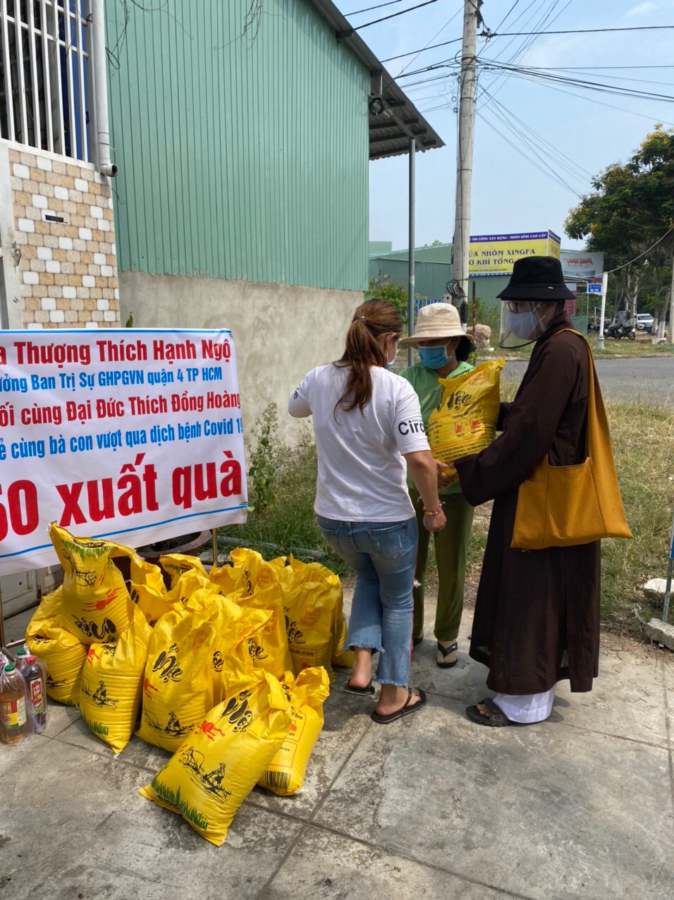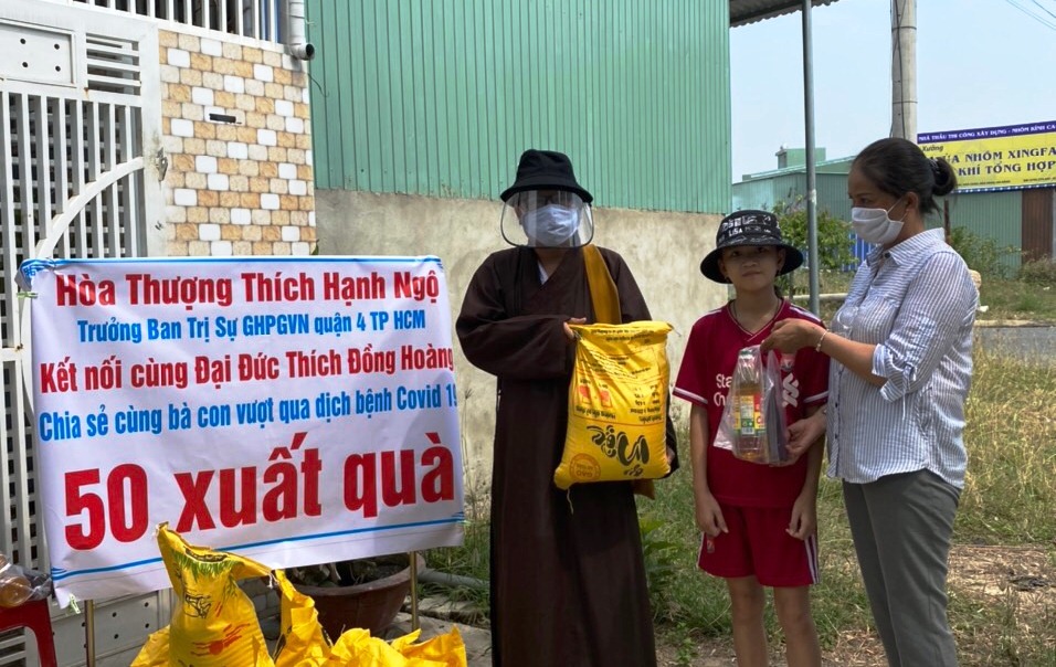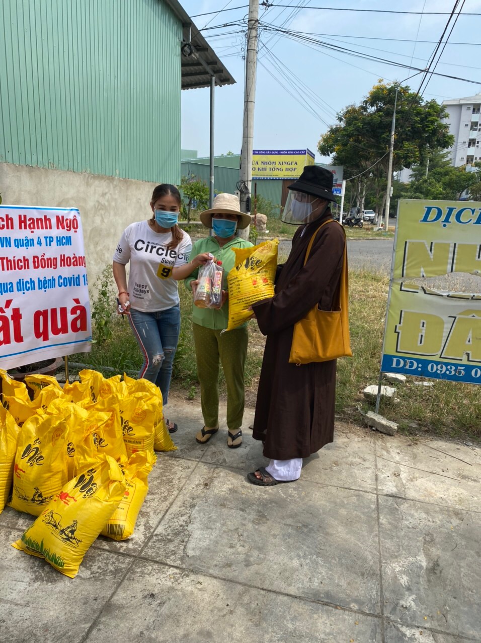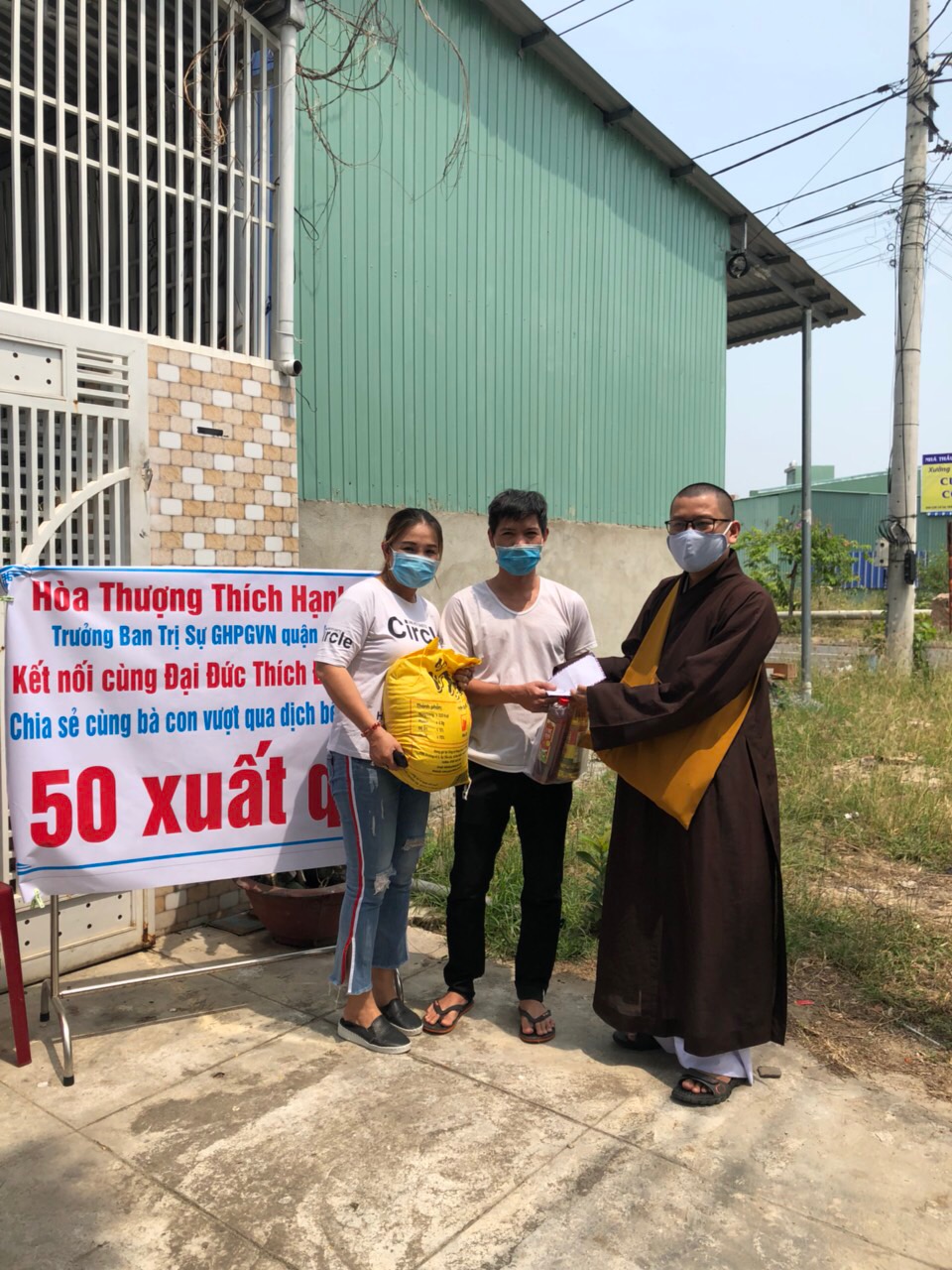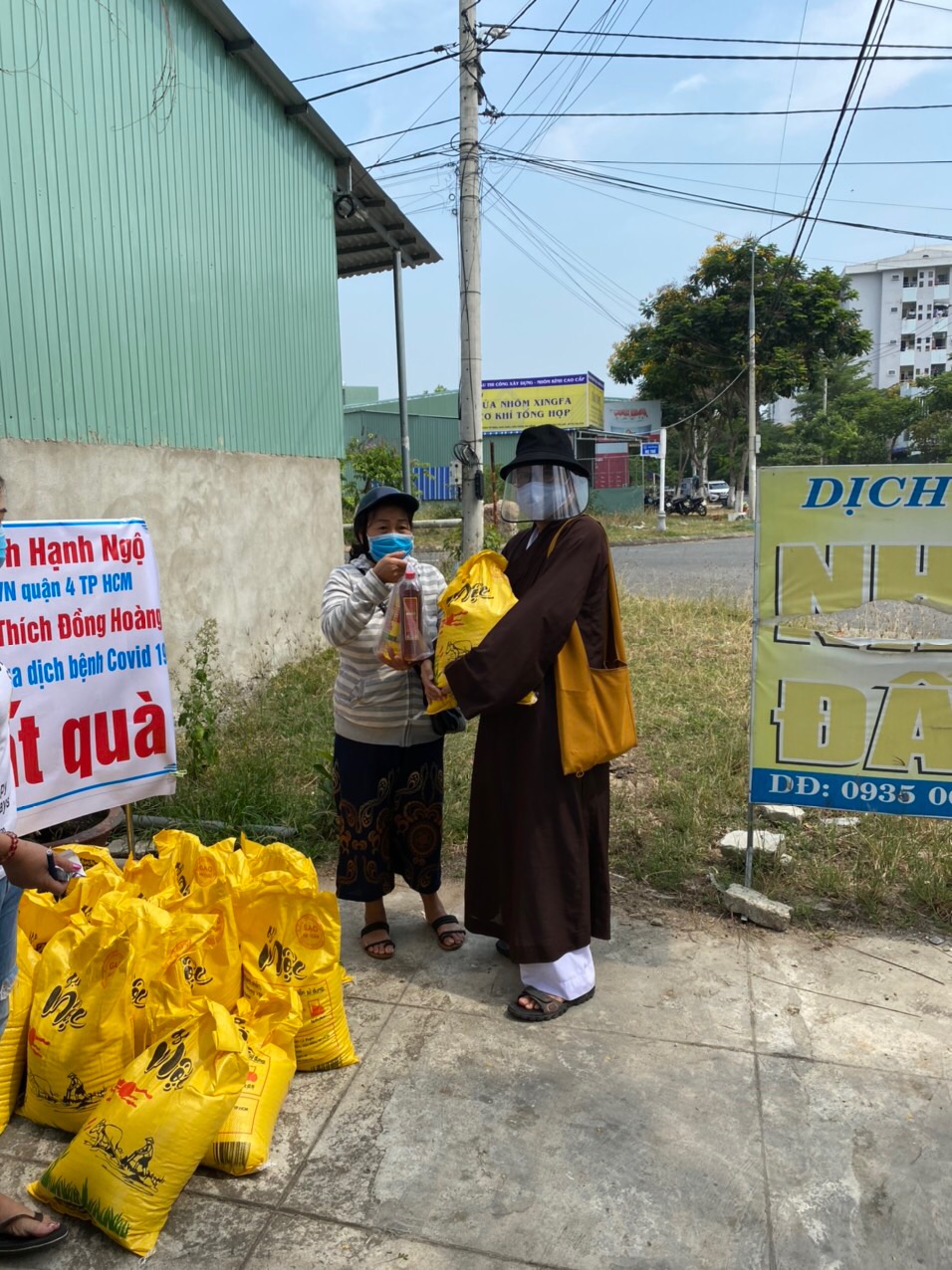 Thể hiện tinh thần từ bi của đạo Phật , hiểu được sự khó khăn của bà con những ngày cách ly xã hội theo chỉ thị 16 của chính phủ nhằm quyết liệt đẩy lùi dịch bệnh Covid 19, Hoà Thượng Thích Hạnh Ngộ – Phó trưởng Ban Thường trực Ban Tăng Sự GHPGVN TP Hồ Chí Minh , Trưởng BTS GHPGVN Quận 4 , trụ trì chùa Đức Quang cùng tăng chúng bổn tự đã làm nhiều chương trình thiện nguyện chia sẻ đến bà con chung tay chống Dịch .