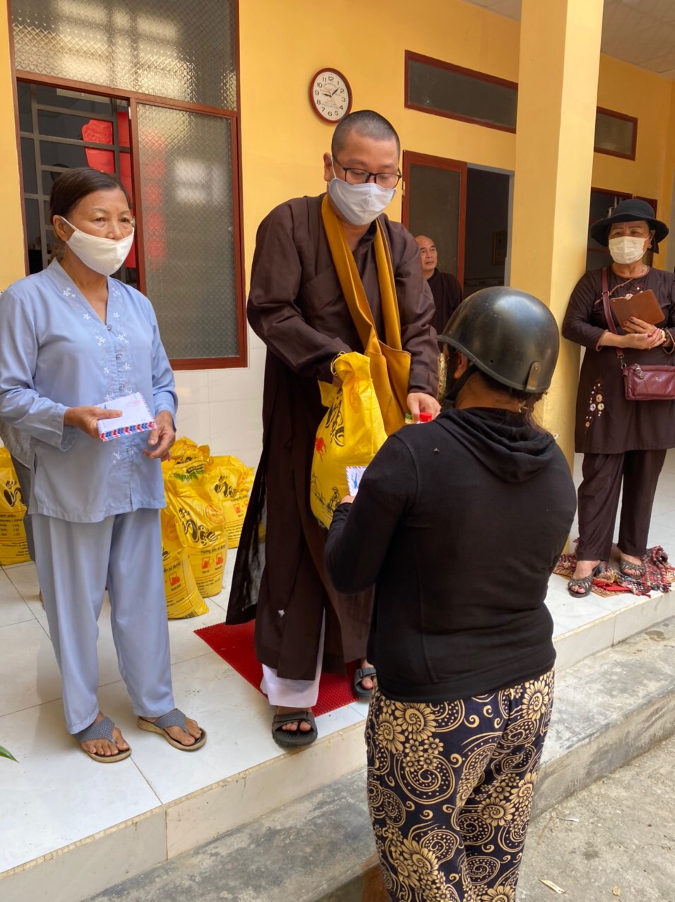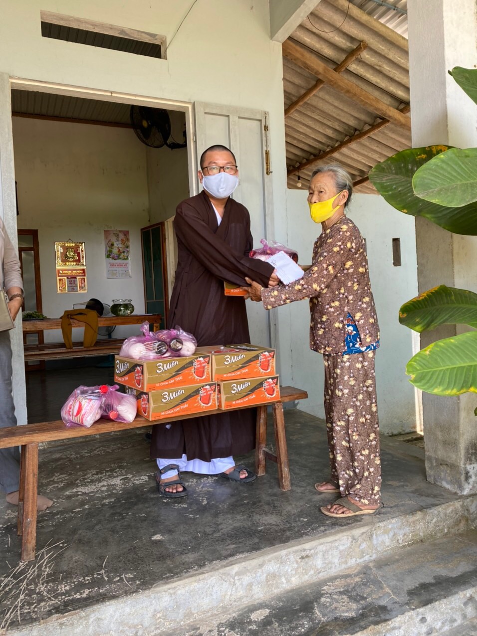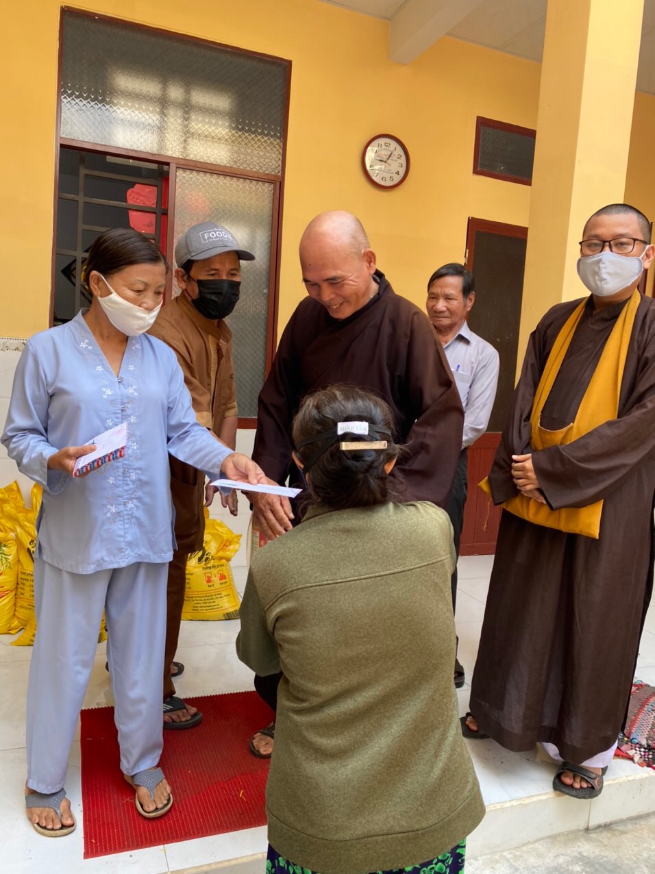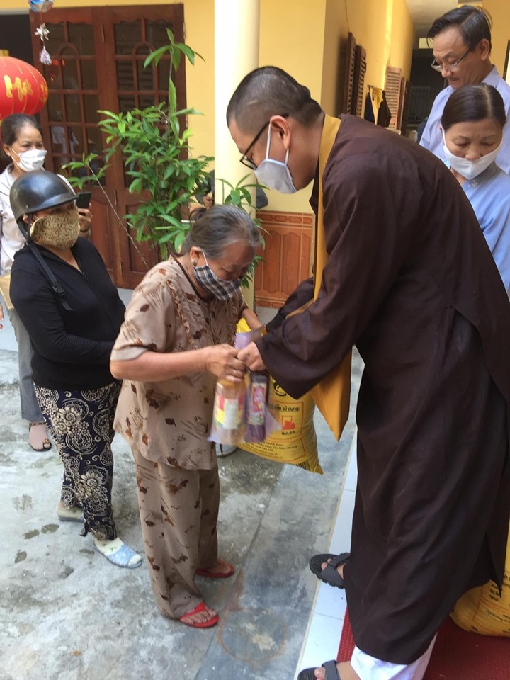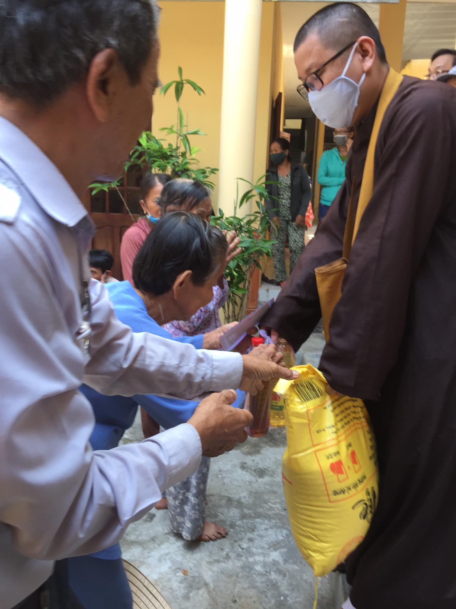 Hoà Thượng Thích Hạnh Ngộ – Phó trưởng Ban Thường trực Ban Tăng Sự GHPGVN TP Hồ Chí Minh , Trưởng BTS GHPGVN Quận 4 , trụ trì chùa Đức Quang trao 195 xuất quà cho bà con miền Trung.