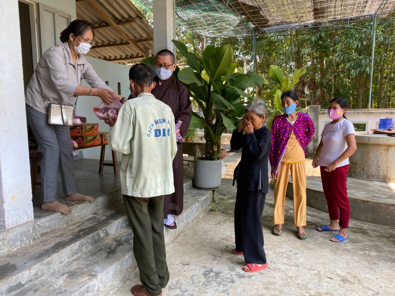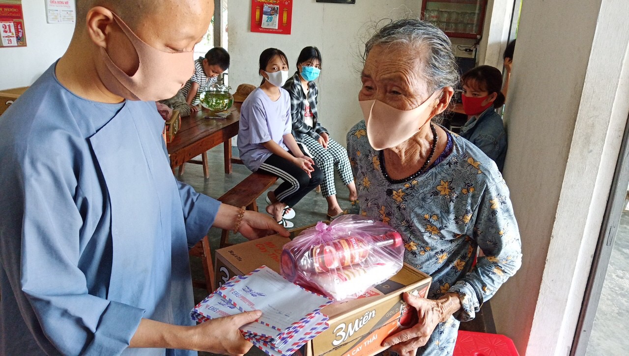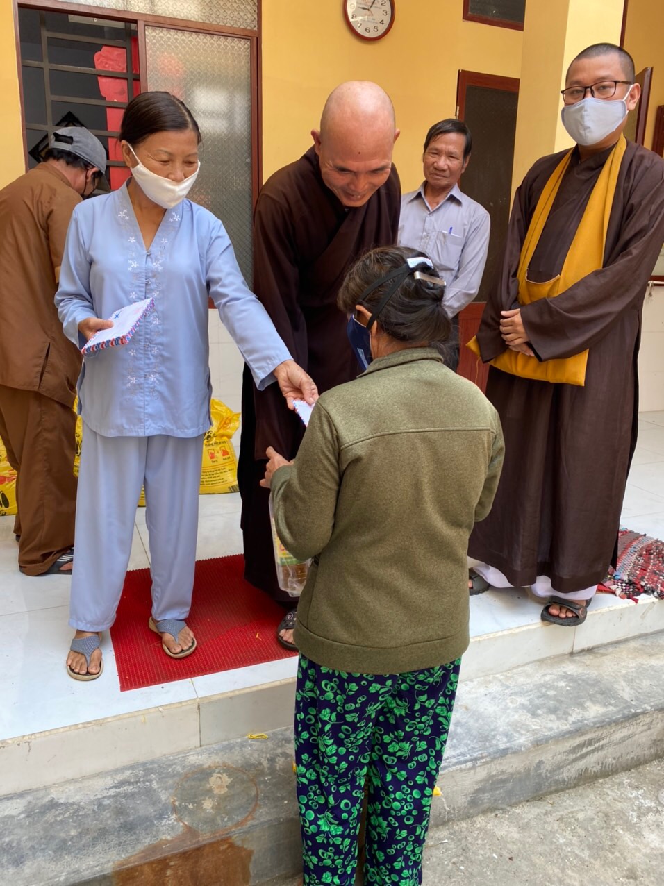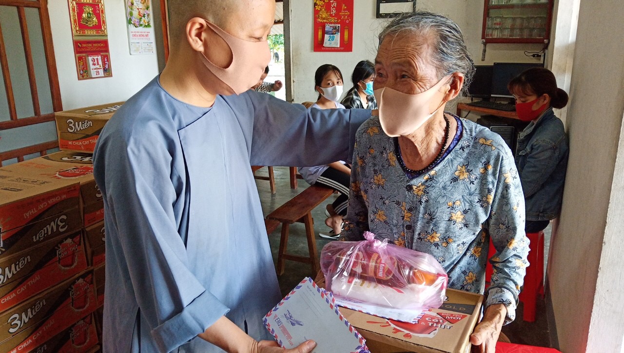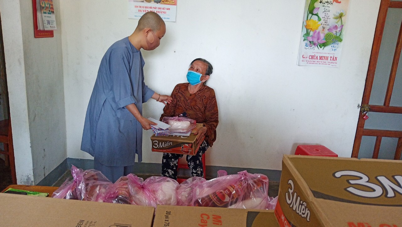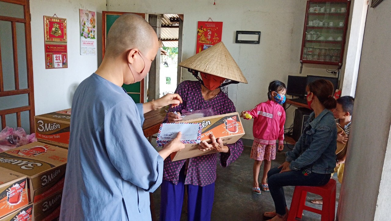 Hoà Thượng Thích Hạnh Ngộ – Phó trưởng Ban Thường trực Ban Tăng Sự GHPGVN TP Hồ Chí Minh , Trưởng BTS GHPGVN Quận 4 , trụ trì chùa Đức Quang trao 195 xuất quà cho bà con miền Trung.