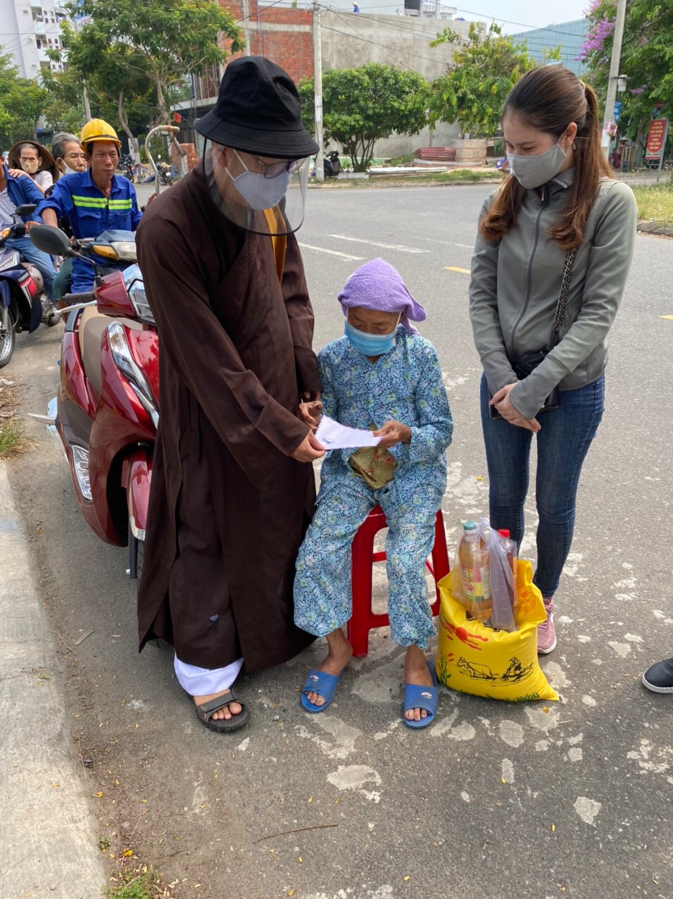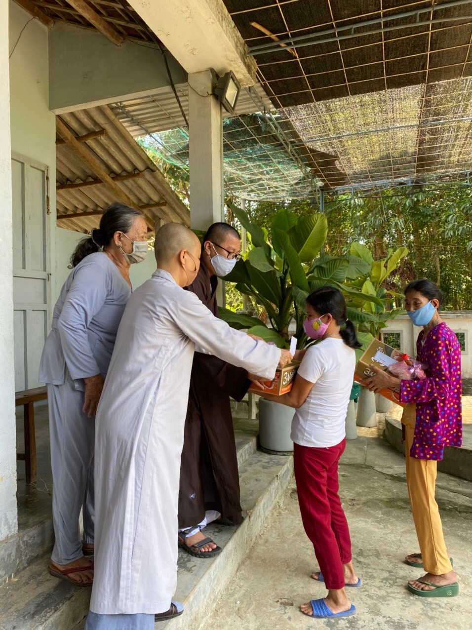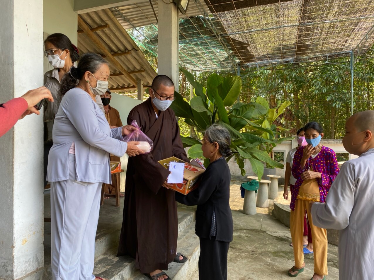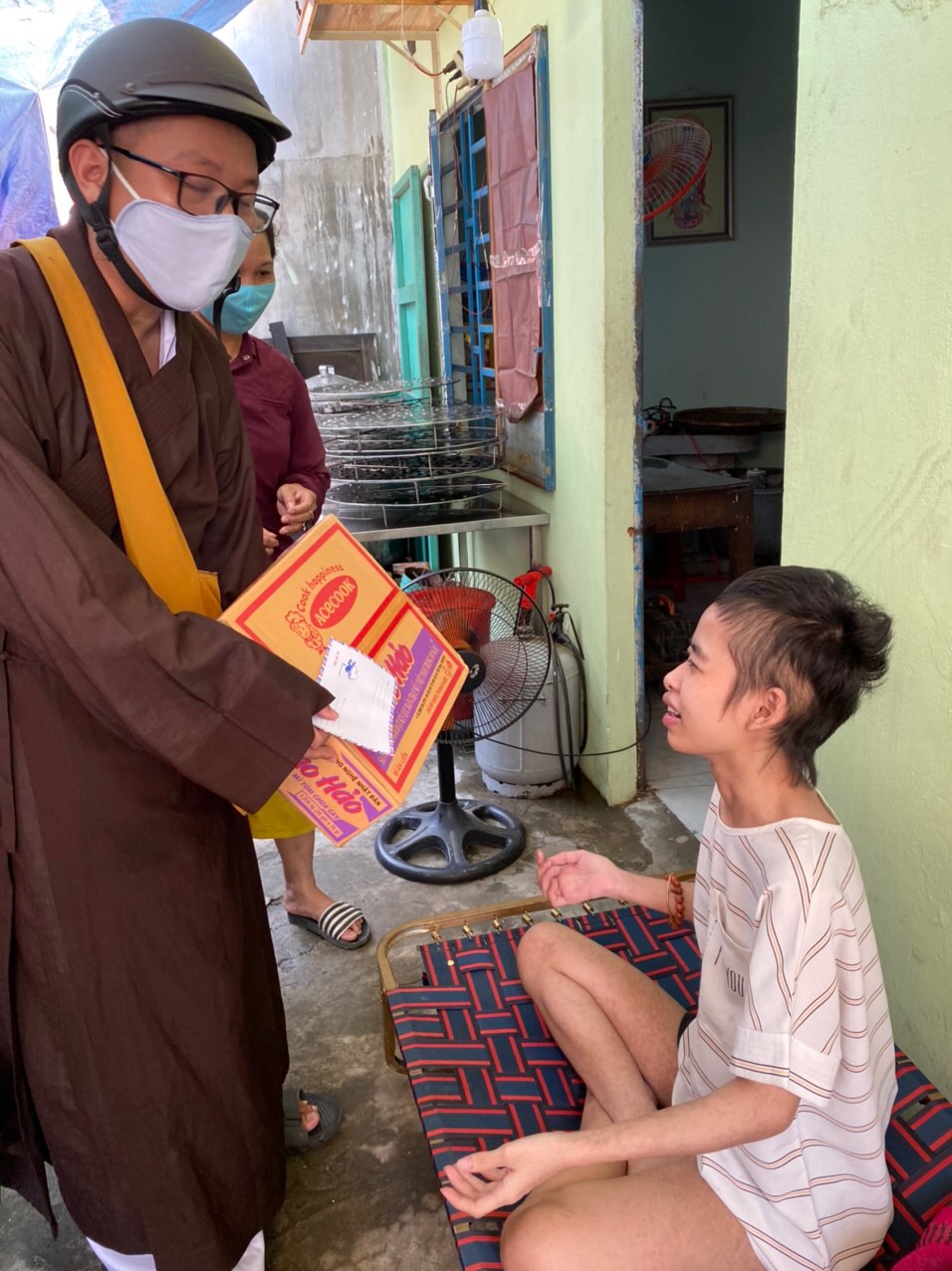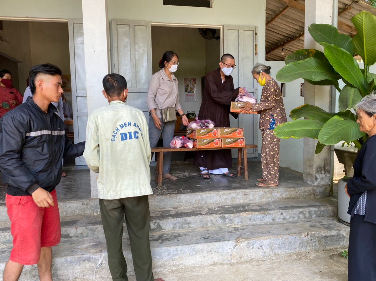 Hoà Thượng Thích Hạnh Ngộ – Phó trưởng Ban Thường trực Ban Tăng Sự GHPGVN TP Hồ Chí Minh , Trưởng BTS GHPGVN Quận 4 , trụ trì chùa Đức Quang trao 195 xuất quà cho bà con miền Trung.