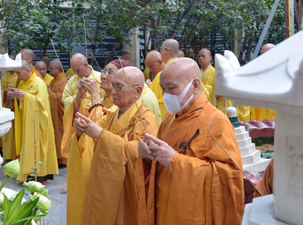Tại buổi lễ, chư tôn đức Giáo phẩm Chứng minh tông phong cùng chư tôn đức Tăng Ni trong môn hạ và đông đảo Phật tử đã dâng hương tưởng niệm, đảnh lễ Giác linh Đại lão Hòa thượng tại bảo tháp Phù Thi.