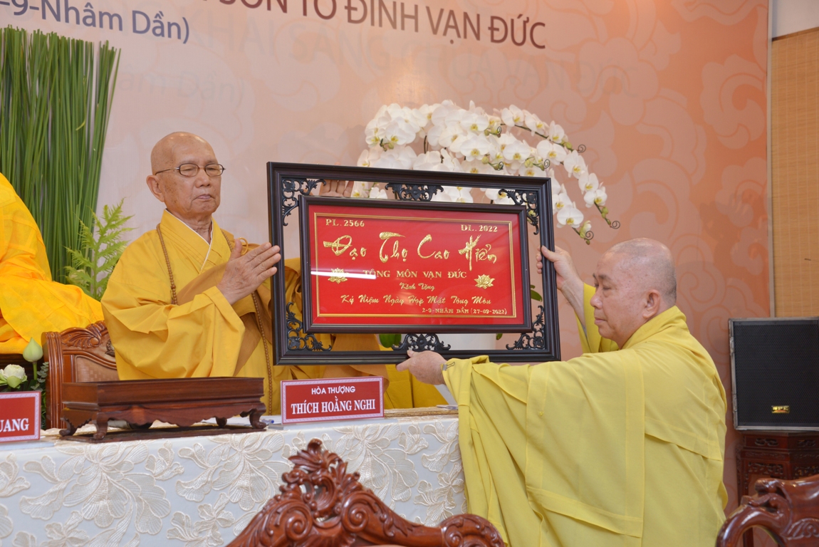 Buổi lễ có sự hiện diện của Hòa Thượng Thích Nhật Quang, Hòa thượng Thích Hoằng Nghi, Hòa thượng Thích Hoằng Tri cùng chư tôn đức trực thuộc Tông phong Vạn Đức đồng tham dự.
