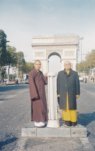 Những ngày ở Paris, đoàn có được mấy buổi đi tham quan. Gia đình anh Lại Như Bằng, anh Bùi Khắc Viện đưa đi thăm một số chùa như: Hoa Nghiêm, Linh Sơn, Khuông Việt . . . Sư cô Thanh Nghiêm, Sư cô Thanh Lương đưa đi dạo những địa danh nổi tiếng Paris rồi sang cả Bỉ. Ngồi trên xe mới thấy Hoà thượng vui tính và thỉnh thoảng cũng có vài câu nói hài cho mọi người vui cười. Đến những nơi nổi tiếng, mới biết Hoà thượng thích … chụp hình. Mỗi tấm hình Ngài muốn chụp, không đơn giản là chụp chơi, Ngài như muốn có dấu ấn ở đây. Lúc đến viện bảo tàng Louvre, Hoà thượng nói: “TC à, cái viện bảo tàng này tuổi nó cũng gần bằng với Thăng Long nhà mình đấy, làm một tấm hình ở đây chơi”. Rồi lúc đi ngang qua đại lộ Champs-Élysées, Hoà thượng nói người lái xe: “Tấp vô, tấp vô, làm thêm một tấm hình ở đây nữa. Cái Khải Hoàn Môn này là do ông Napoleon xây đã hằng trăm năm rồi nè”. Thế là mấy thầy trò cứ vô tư … đứng giữa đường mà nháy máy. Vâng, “Cái bảo tàng này bằng tuổi với Hoàng thành Thăng Long nhà mình”, “Cái Khải Hoàn Môn kia do ông Napoleno xây”, Ngài nói rất tự nhiên như đang nói về những di tích bên nhà. Vậy để thấy rằng, Ngài biết khá nhiều về văn hoá Pháp.