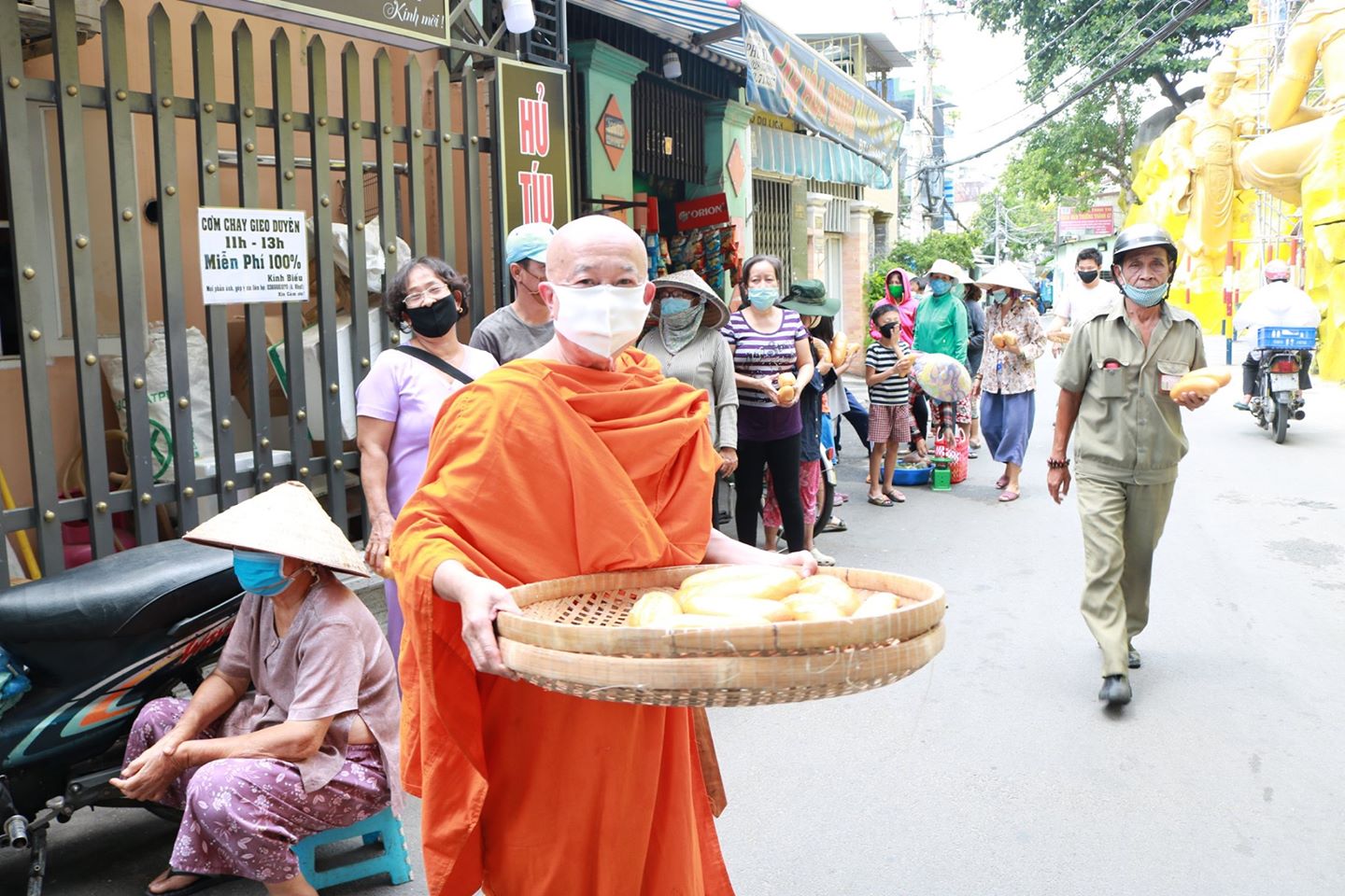 Những ngày này, nắng nóng tháng Tư gắt gay, nhưng Hòa thượng Thích Thiện Chiếu và các tăng ni phật tử chùa Kỳ Quang II (quận Gò Vấp) vẫn không nề hà, tiếp tục tự sản xuất bánh mì để kịp bữa trưa phát tặng miễn phí cho người nghèo, người có hoàn cảnh khó khăn, người bán vé số dạo… Những người đang hàng ngày phải chịu ảnh hưởng của dịch bệnh Covid-19.