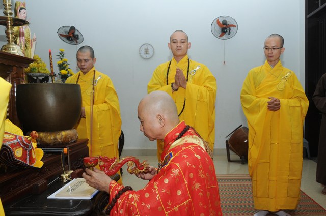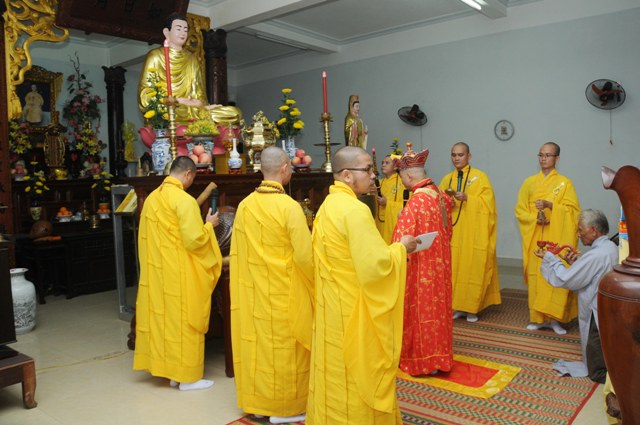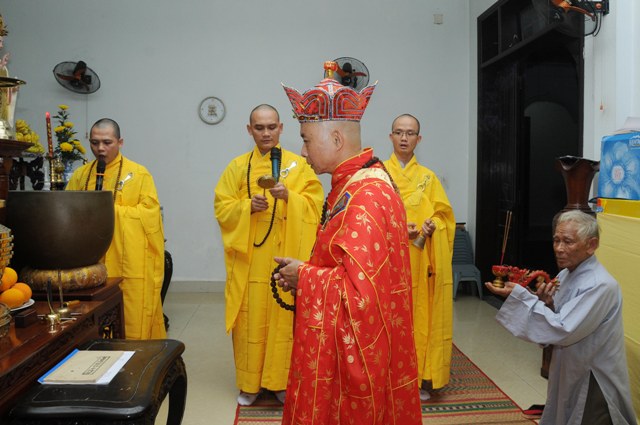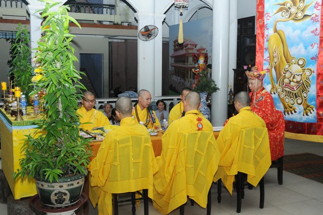 Quang lâm chứng minh và tác lễ có HT.Thích Nguyên Quang (Sám chủ đàn tràng) cùng chư tôn đức trong ban kinh sư. Tại buổi lễ, chư tôn đức đã niêm hương lễ hoàn đàn, sái tịnh, dâng sớ tán đàn. Nghi thức chẩn tế thí thực cũng được thực hiện trang nghiêm ngay sau đó.