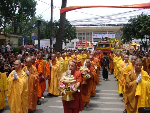 Theo lịch trình là 9h30 tổ chức lễ cung nghênh ngọc xá lợi phật và thánh tăng tại chùa Quán Sứ, nhưng do việc cả đoàn xe hoa, trang trí công phu dài mấy chục mét di chuyển khó khăn trong tình trạng giao thông ở ta, phải gần 11h30, ngọc xá lợi mới được rước vào chùa.