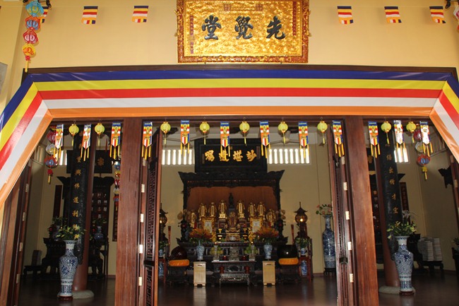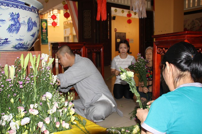 Sau hơn một tuần tất bật chuẩn bị dưới sự chỉ đạo của HT.Thích Trí Quảng, Phó Chủ tịch HĐTS – Trưởng BTS GHPGVN TP.HCM – Viện Chủ Tổ Đình Ấn Quang, TT. Thích Quãng Chơn, Phó ban Nghi lễ BTS GHPGVN TP.HCM – Tri Sự Tổ Đình Ấn Quang cùng toàn thể chư tăng và Phật tử đã hoàn tất công tác trang trí lễ đài Phật Đản, treo cờ, lồng đèn, cắm hoa kiệu Phật … tất cả đã sẵn sàng để ngày mai mùng 8 rước Phật lúc 4h sáng.