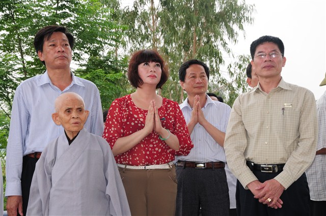 Về phía đại diện lãnh đạo chính quyền các cấp có bà Bùi Thị Keng – Vụ trưởng vụ pháp luật – Văn phòng chủ tịch nước, Ông Bùi Hải Vịnh – Phó giám đốc sở nội vụ, Trưởng ban tôn giáo chính quyền tỉnh Thanh Hóa. Bà Ngô Thị Hồng Hảo – Phó chủ tịch Hội chữ thập đỏ tỉnh Thanh Hóa cùng các ông bà đại diện các sở ban ngành tỉnh Thanh Hóa. Về phía huyện Hoằng Hóa có: Ông Nguyễn Đình Hiếu – Ủy viên BCH tỉnh ủy – Bí thư huyện ủy – Chủ tịch HĐND huyện, Ông Phạm Bá Oai – phó bí thư huyện ủy, chủ tich UBND huyện cùng các ông bà trong ban thường vụ huyện ủy – Trưởng các phòng ban huyện Hoằng Hóa, đại diện huyện bạn có Ông Lê Quang Tuấn – Phó bí thư huyện ủy chủ tịch UBND huyện Vĩnh Lộc cùng các ông bà cùng đoàn cũng như đại diện huyện Thạch Thành, Yên Định. Về phía xã Hoằng Thanh có: Ông Tạ Hữu Quang – Huyện ủy viên – Bí thư Đảng ủy xã Hoằng Thanh, Ông Cao Văn Quang – Phó Bí thư đảng ủy – Chủ tịch UBND xã Hoằng Thanh cùng các ông bà đại diện các ban nghành đoàn thể cấp xã sở tại. về phía quý mạnh thường quân và quý vị khách quý có Bà Nguyễn Thị Xuân – Phó giám đốc thường trực Công Đoàn Công Thương Việt Nam, Ông Phạm Văn Lâm – Giám đốc Ngân Hàng TMCP Công Thương Việt Nam chi nhánh Thanh Hóa, Ông Lê Văn Dũng – Giám đốc Ngân Hàng TMCP Công Thương Việt Nam chi nhánh Sầm Sơn, Ông Nguyễn Xuân Mai – Giám đốc Ngân Hàng TMCP Công Thương Việt Nam chi nhánh Bỉm Sơn cùng các công nhân viên ngân hàng công thương Việt Nam và hàng ngàn bà con nhân dân quý tín đồ Phật tử xa gần đã về dự.
