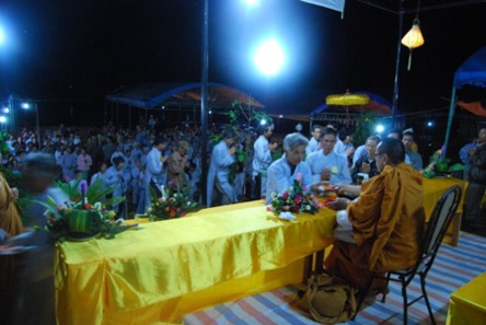 Nhân dịp này, Thượng tọa tặng cho Phật tử ở đây đĩa VCD ghi lại lời giảng của Thượng tọa. Thời thuyết pháp kết thúc vào lúc 22h30 trong sương đêm đã năng hạt nhưng hầu hết Phật tử đền nán lại để cung tiễn Thượng tọa ra về.