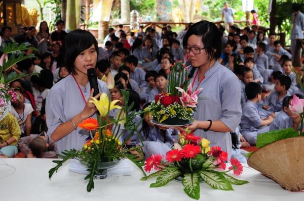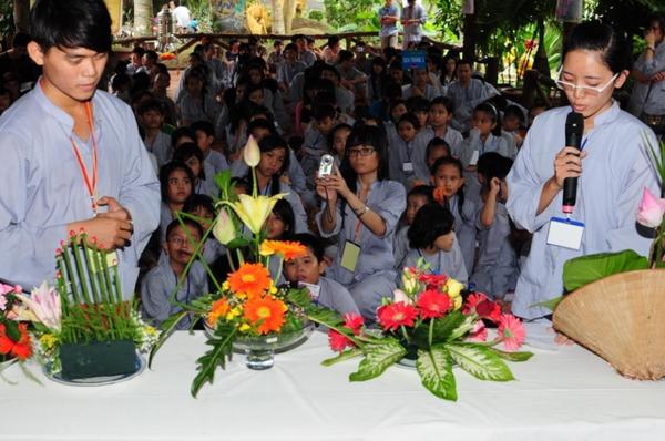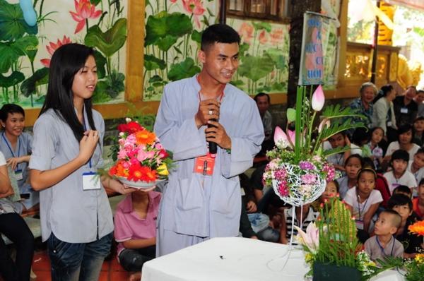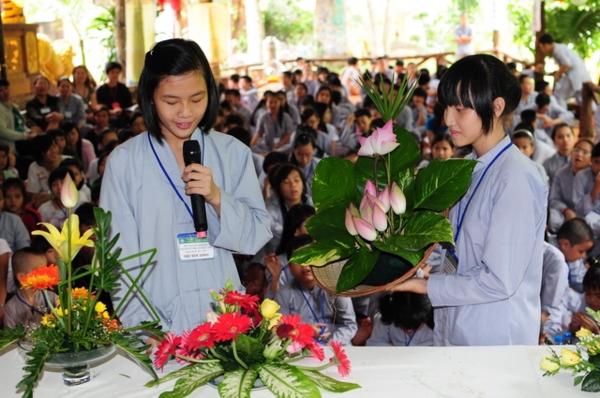 Khởi hành từ chùa Thiên Chánh, TP.HCM từ lúc 4h00 sáng, các bạn đến chùa Huyền Trang, Đồng Nai và được tham dự cuộc thi cắm hoa vào lúc 9h00. Cuộc thi, là sự trổ tài khéo léo, mỹ thuật, tinh tế của từng bạn trẻ. Chưa đầy một giờ đồng hồ, các bạn đã cho ra đời rất nhiều tác phẩm đẹp mắt, đầy nghệ thuật sáng tạo.