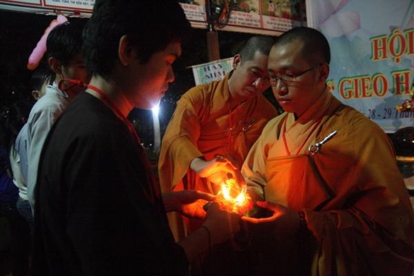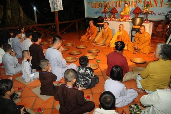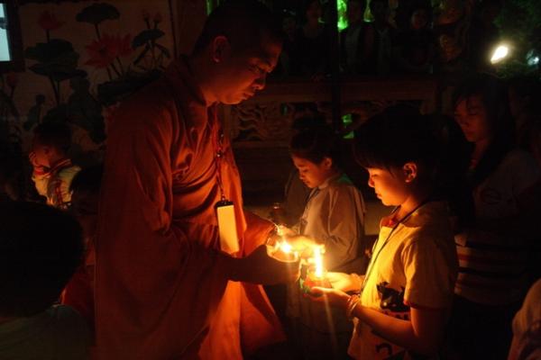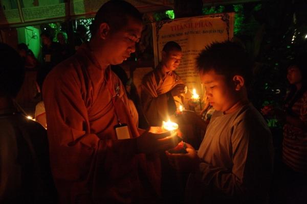 Buổi tối, các tu sinh được tham dự đêm đốt nến tri ân cha mẹ. Chỉ mới xa cha mẹ một ngày thôi, thế mà sự trống vắng, chia xa đã làm các em òa khóc tại đêm đốt nến. Những giọt nước mắt ngọt ngào rơi rớt, những giọt nước mắt hối lỗi vì đã lỡ làm cha mẹ đau lòng. Đêm đốt nến trở nên thiêng liêng, ý nghĩa hơn khi các bạn trẻ được lắng nghe những lời tri ân cha mẹ từ ĐĐ. Thích Hạnh Tín, sự chứng minh của ĐĐ. Thích Phước Huệ, ĐĐ. Thích Quảng Tiến cùng quý thầy cô và Phật tử.