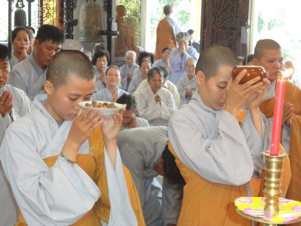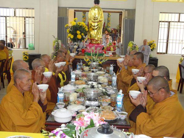 Đại lễ cúng dường trai tăng được thực hiện ngay sau đó theo nghi lễ truyền thống của Phật giáo xưa nay. NT.TN Bửu Hòa đã hướng dẫn đại chúng gieo trồng phước thiện đến mảnh ruộng phước phì nhiêu của chư tôn tịnh đức Tăng già. Đây là một nét văn hóa đặc thù của Phật giáo xưa nay, tưởng nhớ đến người đã mất và làm tất cả những điều tốt đẹp cho họ.