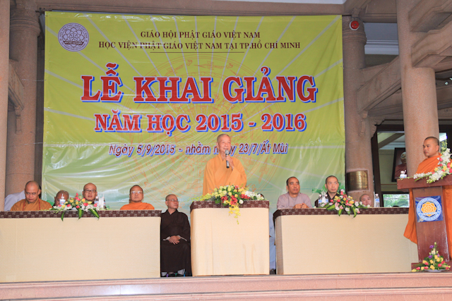 Phát biểu khai mạc tại buổi lễ, HT.Thích Trí Quảng đã gởi lời chúc mừng đến các Tăng Ni sinh khóa XI chuẩn bị bước vào một học kỳ đầu tiên tại Học viện. Sau đó, Hòa thượng cũng khái quát sơ bộ chương trình đào tạo mới của Học viện và cơ sở mới tại Lê Minh Xuân, từ đó sinh viên sẽ có một môi trường vừa Học vừa Tu theo đúng một Tăng đoàn. Hòa thượng viện trưởng cũng sách tấn Tăng, Ni sinh phải luôn tinh tấn trong quá trình Tu và Học để mai sau trở thành những bậc tài đức giúp đỡ cho Đất nước và Giáo hội, cũng như một phần đền đáp công ơn của Đức Phật và Thầy tổ.