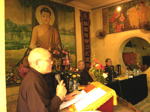 Sau nghi lễ niệm Phật, Đại đức Thích Minh Tiến – Thư ký Hội đồng Học viện – Phó Chánh văn phòng Học viện PGVN tại HN tuyên bố lý do, cư sĩ Lương Gia Tĩnh – Chủ nhiệm bộ môn thế học trình bày kế hoạch giảng dạy về các môn kinh tạng, luật tạng, luận tạng, lịch sử Phật giáo trong năm học 2007 -2008, năm học 2008 -2009, 2009 – 2010 và nêu thực trạng cần khắc phục.