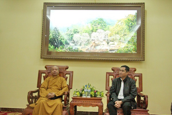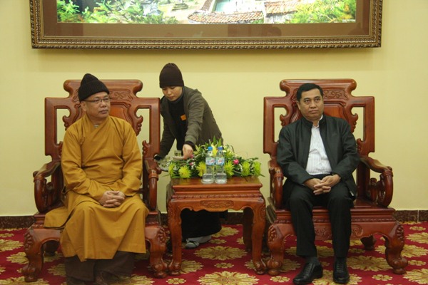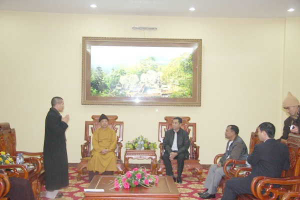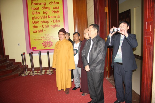 Tiếp đoàn có Thượng toạ Thích Thanh Đạt – Phó Viện trưởng thường trực Học viện Phật giáo Việt Nam tại Hà Nội, chư Tôn đức Tăng Ni Văn phòng HVPGVN tại Hà Nội.