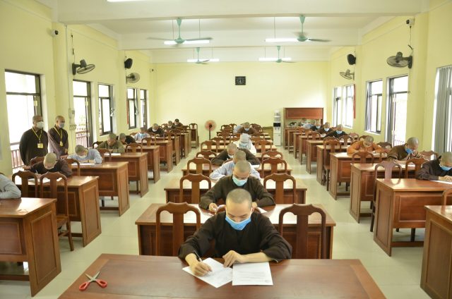 Kỳ thi sẽ được diễn ra trong hai ngày 21 và 22/8/2020 với 03 môn thi: Phật pháp căn bản, Văn học Việt Nam và Ngoại ngữ (chọn Hán văn, Anh văn hoặc Trung văn). Tại buổi thi đầu tiên, các Tăng Ni sinh đã thực hiện bài thi nghiêm túc, đúng quy chế dưới sự hướng dẫn, giám sát chặt chẽ của chư Tôn đức giám thị.