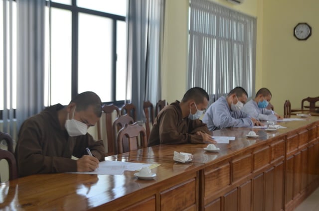 Trước khi làm bài, Hòa thượng Viện trưởng Thích Hải Ấn đã có lời sách tấn, tán thán đến toàn thể Tăng Ni thí sinh, các thí sinh đã ôn tập chuyên cần và tham gia kỳ thi rất nghiêm túc. Hòa thượng mong rằng bằng những kiến thức đã được ôn tập, các Tăng Ni thí sinh sẽ hoàn thành bài thi một cách tốt đẹp, đúng quy định do Hội đồng thi đã đề ra.