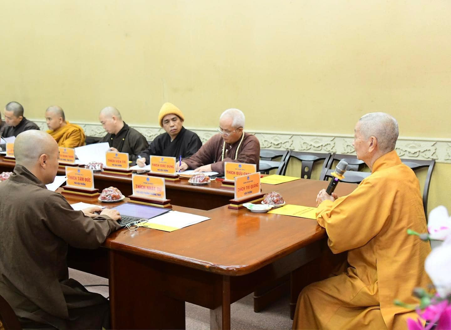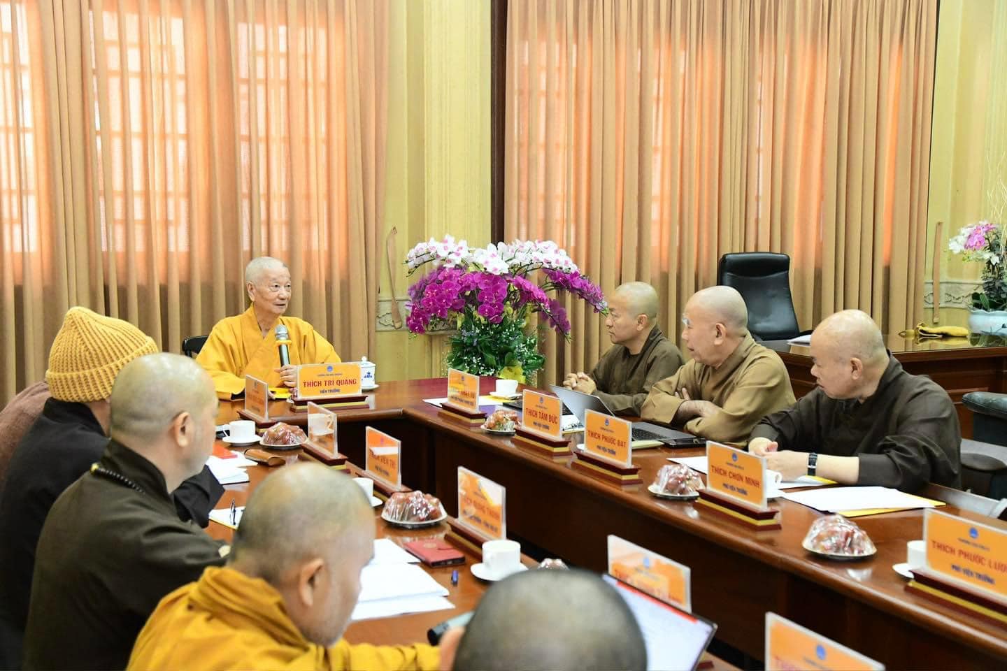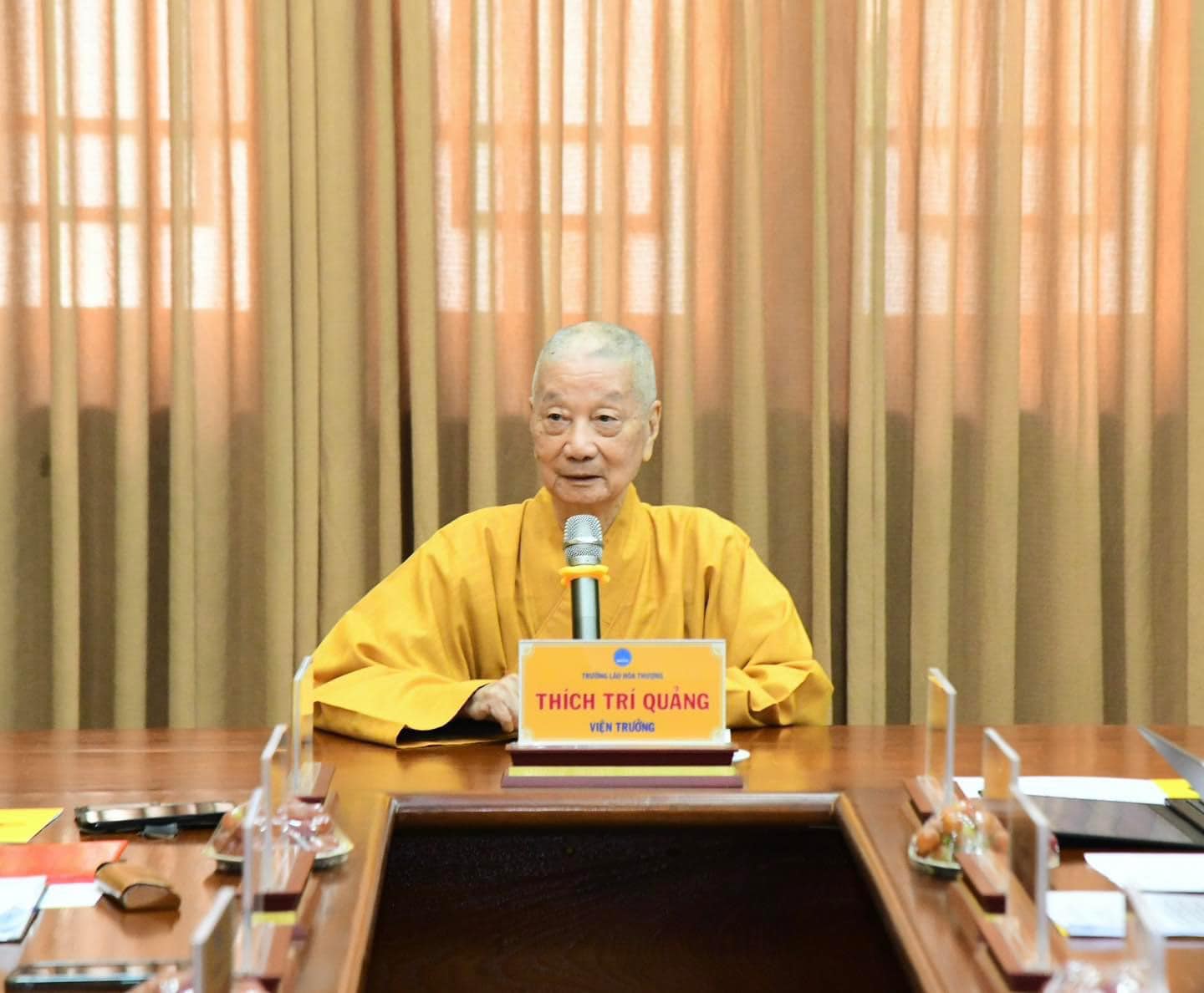 Phát biểu tại phiên họp, Trưởng lão Hoà thượng Thích Trí Quảng tán dương nỗ lực của tập thể Hội đồng Điều hành trên tất cả các phương diện để thành tựu được các Phật sự trong năm 2023, nhất là trên phương diện giáo dục, đào tạo, nghiên cứu khoa học.