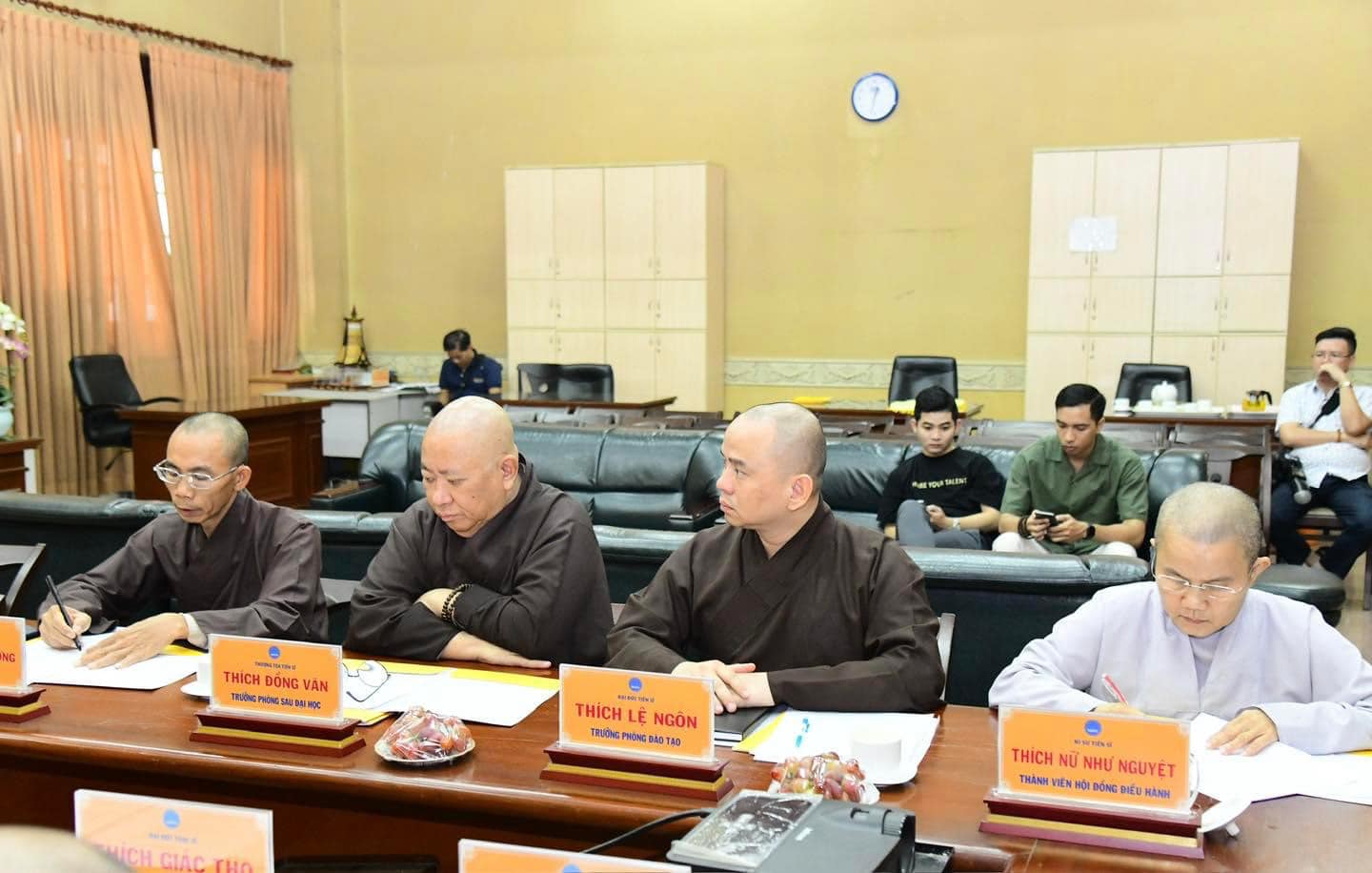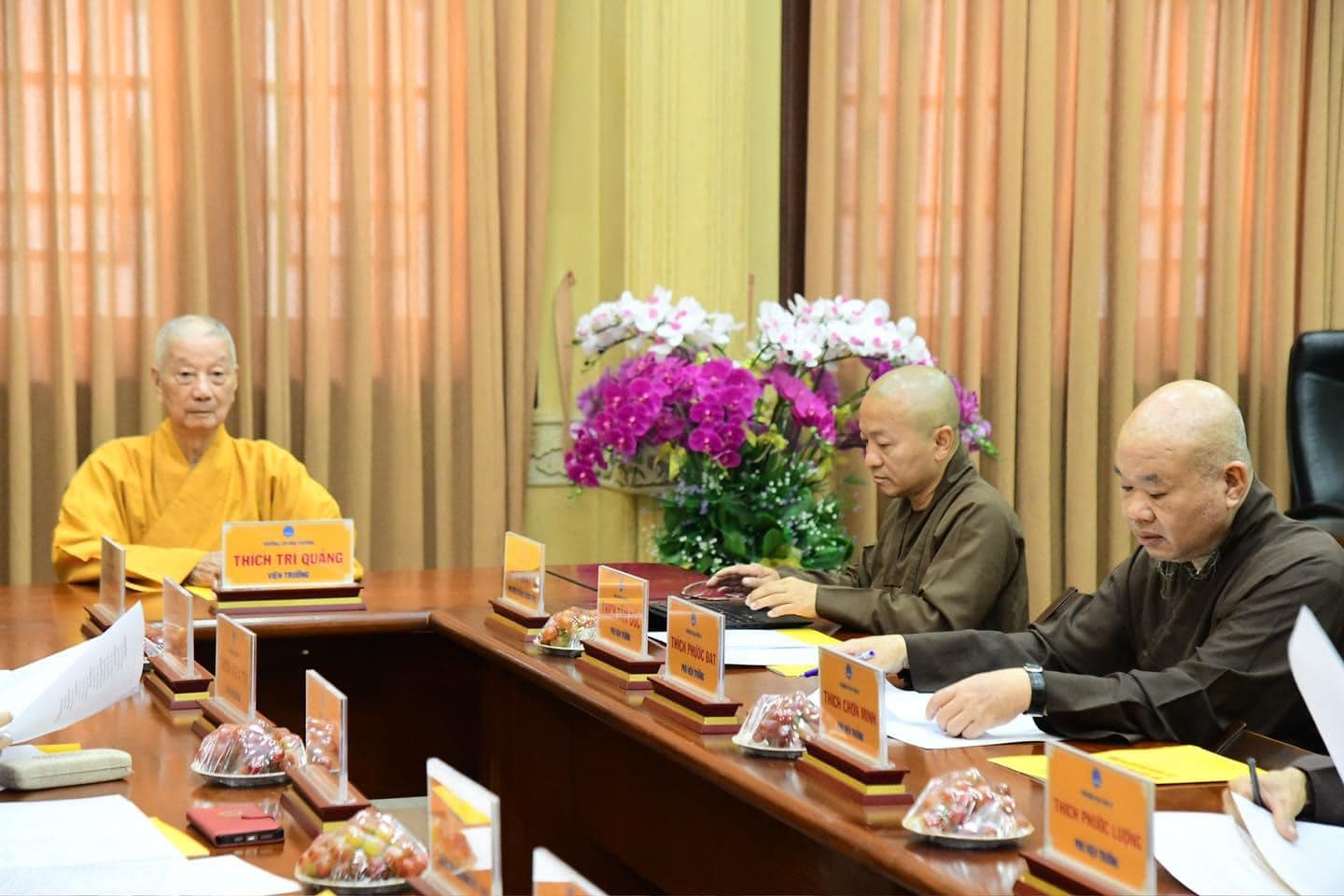 Sáng ngày 15/12/2023, Hội đồng Điều hành Học viện PGVN tại TP.HCM họp phiên thường kỳ tại cơ sở 1 Học viện. Phiên họp đặt dưới sự chứng minh, chủ trì của Trưởng lão Hoà thượng Thích Trí Quảng – Pháp chủ GHPGVN, Viện trưởng Học viện. Tham gia phiên họp có chư tôn đức Tăng, Ni Phó Viện trưởng, chư tôn đức thành viên Hội đồng Điều hành Học viện.