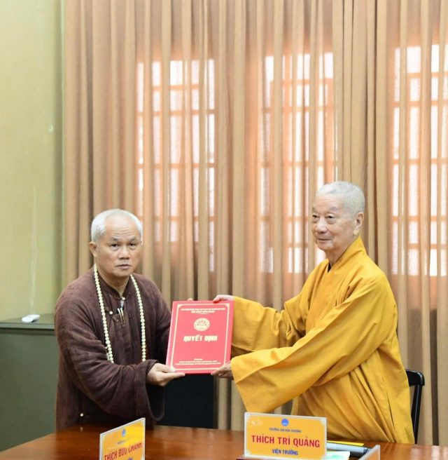 Tại phiên họp, Hội đồng Điều hành đã trao quyết định phân công TT. Thích Giác Dũng – Phó Viện trưởng, Trưởng Khoa Luật học Phật giáo giữ chức Trợ lý Hoà thượng Viện trưởng.