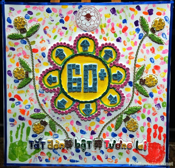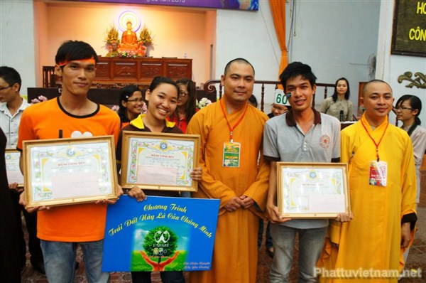 Bạn Tuấn Phi – Hội phó Kế hoạch phát triển của Hội đã chỉ đạo các bạn thành viên thiết kế 2 bức tranh sáng tạo được ghép bằng các loại hạt đậu và giấy màu, Pano nến với lời dạy của đức Phật bảo vệ môi trường đã góp phần thành công cho hội thi với sắc màu rực rỡ.