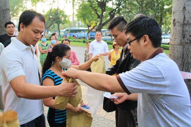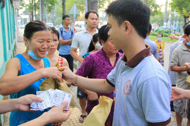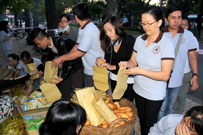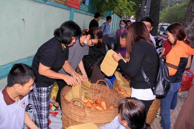 Mặc dù chưa đến 6giờ sáng, nhưng tại cổng bệnh viện đã có đông đảo bệnh nhân xếp hàng ngay ngắn, chờ đợi theo thứ tự để nhận phần ăn. Trên gương mặt các bệnh nhân biểu lộ sự vui mừng, hoan hỉ vì nhận được suất ăn sáng yêu thương mà Hội 14 Chữ trân trọng mang đến. Những ổ bánh mỳ nóng hổi, quả chuối, phô mai và sữa tươi sẽ là bữa ăn đầy đủ dinh dưỡng giúp họ giảm bớt khó khăn, tin yêu vào cuộc sống và điều trị bệnh hiệu quả hơn.