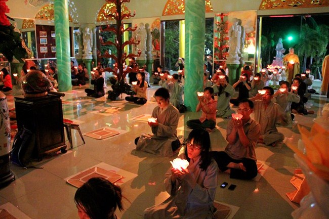 Thầy Thích Minh Hải chủ trì khóa lễ thắp nến hoa đăng, cầu nguyện “AN BÌNH NHÂN SINH” hướng về “Ngày tưởng niệm các nạn nhân tử vong do tai nạn giao thông”. Đại chúng trì tụng kinh Pháp cú và thực tập ăn cơm trong chánh niệm, tĩnh tọa “HẠNH PHÚC TRONG TỪNG PHÚT GIÂY”