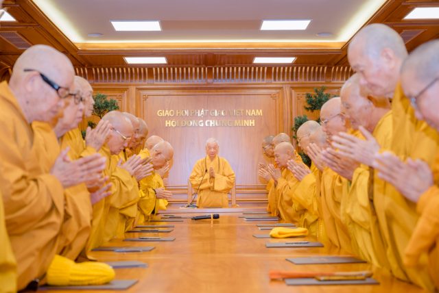 Hội nghị Ban Thường trực Hội đồng Chứng minh GHPGVN dưới sự chủ trì của Đức Pháp Chủ – Đại lão Hoà thượng Thích Trí Quảng, diễn ra tại Văn phòng Hội đồng Chứng minh – Việt Nam Quốc Tự (quận 10, TP.HCM), sáng 21-12.