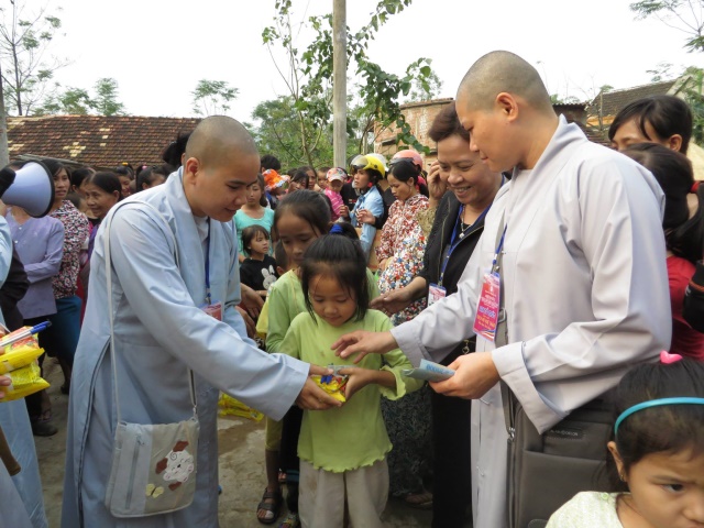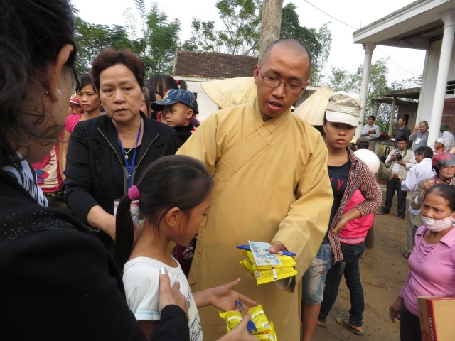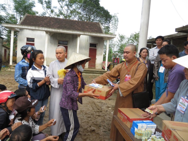 Tại xã, Quảng Sơn, huyện Quảng Trạch, tỉnh Quảng Bình, đoàn đã gửi tặng bà con 300 phần quà. Đến xã Sơn trạch, huyện Bố Trạch, tỉnh Quảng Bình, đây là vùng có số đông dân cư đa phần là hộ ngèo, lại bị ngập nặng nề nhất sau cơn bão. Đoàn đã trao tặng 230 phần quà để khích lệ, an ủi tinh thần bà con. Cũng tại nơi này, quý thầy cô cùng Phật tử đi trong đoàn đã tặng quà cho 200 em thanh thiếu niên.