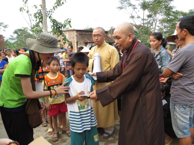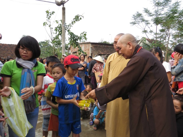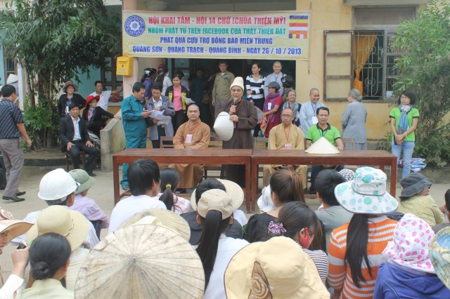 Như vậy, trong ngày 26/10/2013, đoàn từ thiện đã trao tặng 530 phần cho hai xã Quảng Sơn và Sơn Trạch, tổng trị giá khoảng 159.000.000VND, 10.000.000VND dành cho các em nhỏ, trên 30.000.000VND cúng dường thiệt hại sau bão tại chùa Đại Giác và 9.000.000VND được gửi tặng bà con tại làng Xuân Thành – Quảng Trị.
