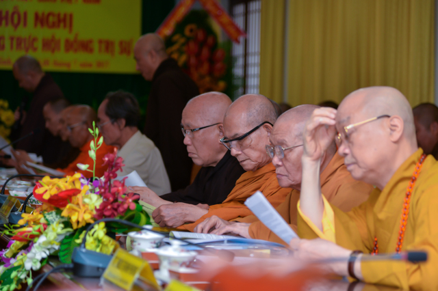 Tại hội nghị, sau lời phát biểu khai mạc của Hòa thượng Chủ tịch HĐTS, Ban Thư ký trình bày báo cáo công tác Phật sự 6 tháng đầu năm 2017 và phương hướng hoạt động 6 tháng cuối năm 2017. Tiếp theo là chủ toàn đoàn lấy ý kiến đóng góp về nội dung của Ban thư ký đã trình bày.