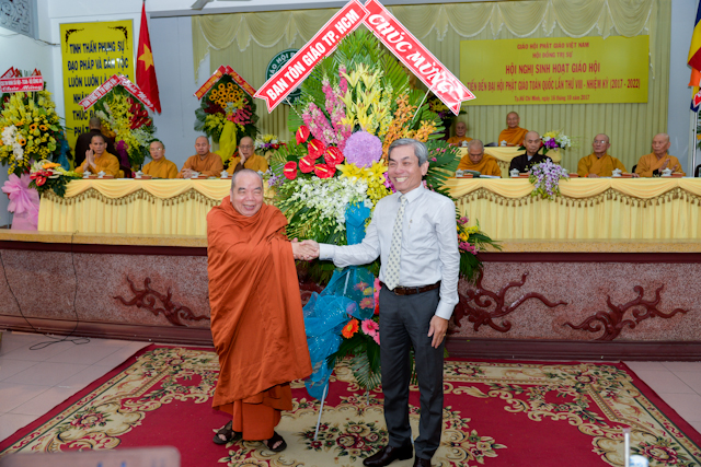 Chính quyền tham dự có ông Trà Quang Thanh, Vụ phó Vụ công tác Tôn giáo phía Nam, Ban Tôn giáo Chính phủ; bà Lê Hà, Cục An ninh Xã hội; ông Lê Hoàng Vân, Phó ban Tôn giáo TP.HCM cùng đại diện chính quyền TP.HCM và Quận 3 sở tại.