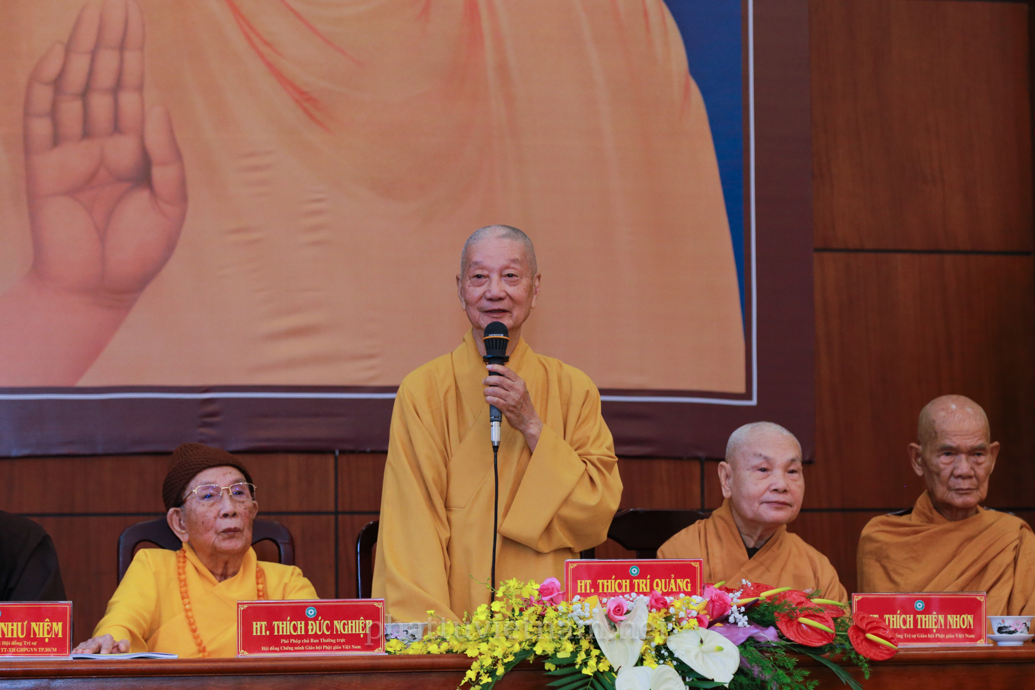 Tại buổi lễ tổng kết, TT.Thích Thiện Thống – Phó chủ tịch HĐTS, kiêm Chánh thư ký Ban Tăng sự TƯ thông qua danh sách tấn phong Giáo phẩm chư Tôn đức Tăng Ni TP.HCM.