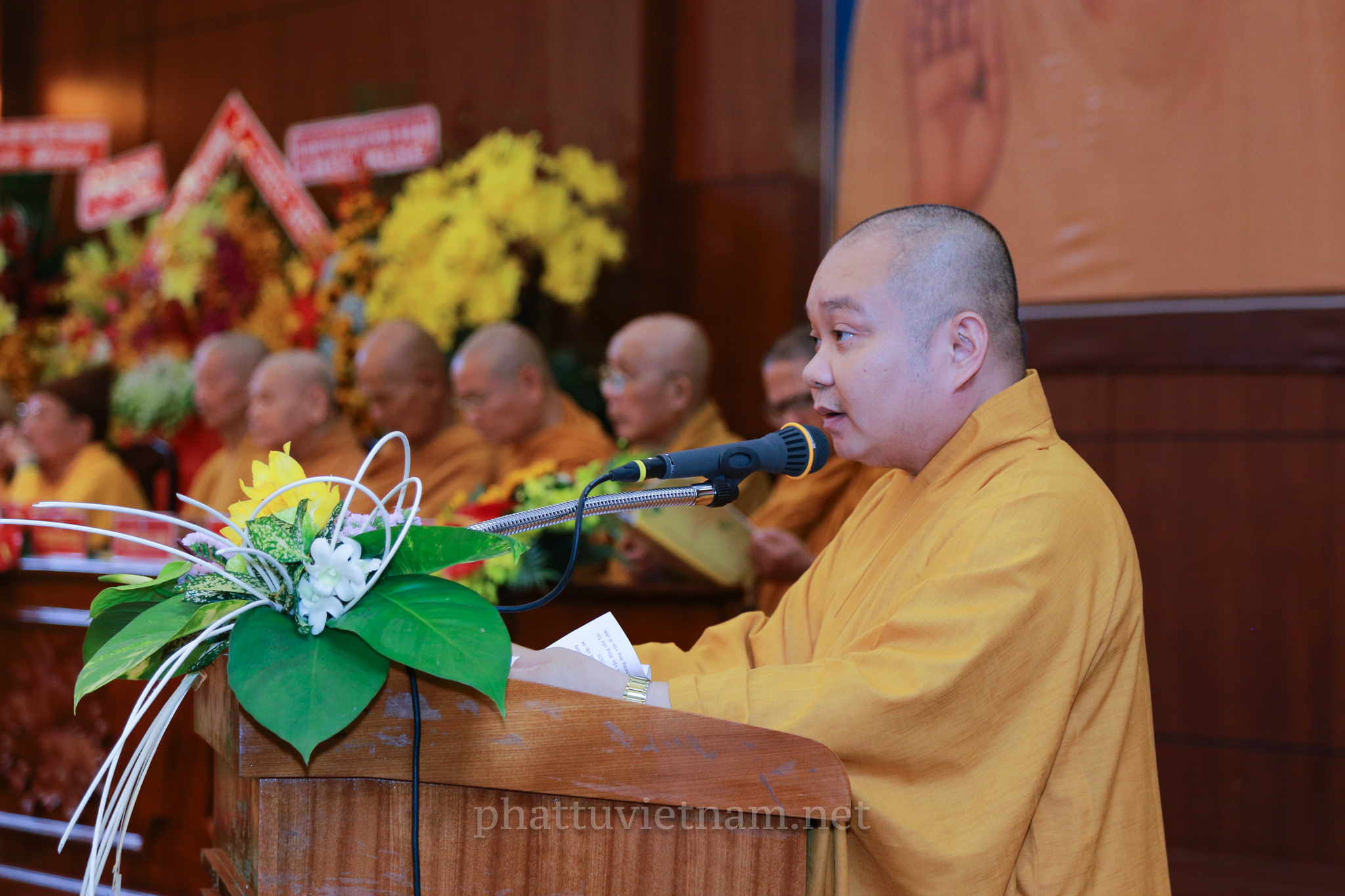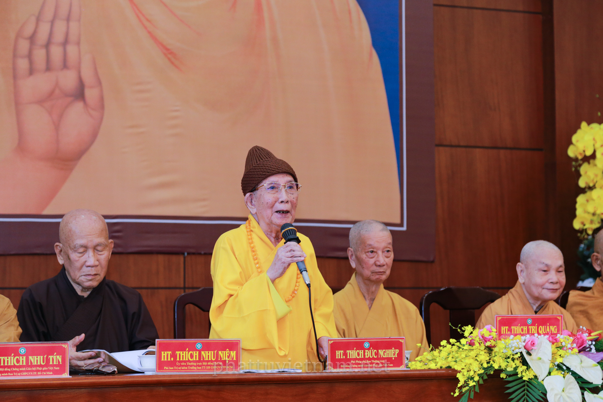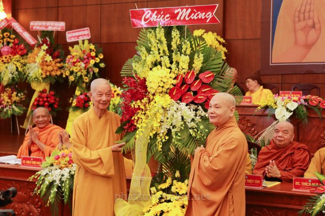 Kết thúc buổi lễ, toàn thể Hội nghị đã tiếp nhận lời huấn từ của HT.Thích Đức Nghiệp – Phó pháp chủ HĐCM GHPGVN.