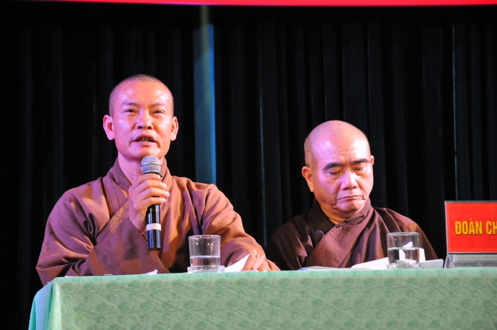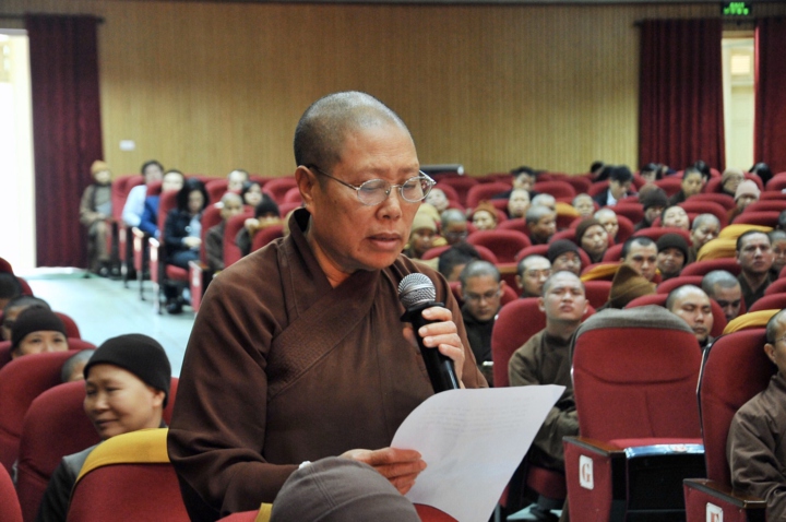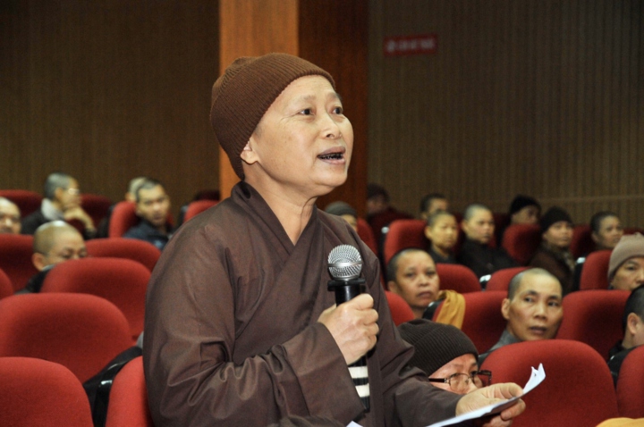 Sau đó, đoàn chủ tọa cũng đã thảo luận, trao đổi cũng như giải đáp thắc mắc đến từ các Tăng, Ni trụ trì các sơ sở tự viện trên địa bàn TP. Hà Nội.