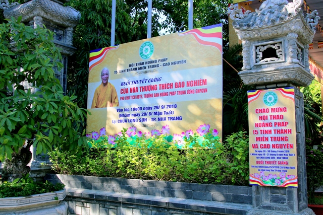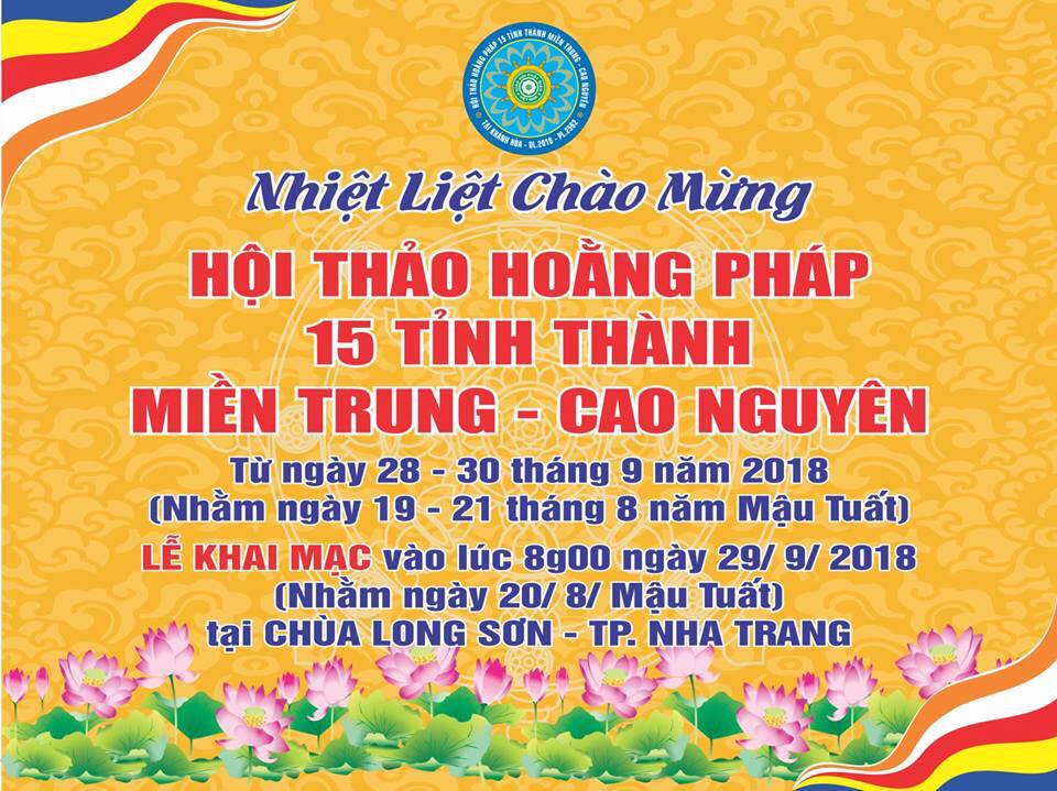 Hội thảo Hoằng pháp 15 tỉnh Khu vực miền Trung Cao nguyên tổ chức từ ngày 28 đến 30/09 tại Nha Trang. Lễ khai mạc diễn ra vào lúc 8g00, ngày 29-9-2018, tại Chùa Sắc tứ Long Sơn, Nha Trang. Dự kiến có khoảng trên 400 đại biểu chính thức đến từ 15 tỉnh Miền Trung – Cao nguyên tham dự.