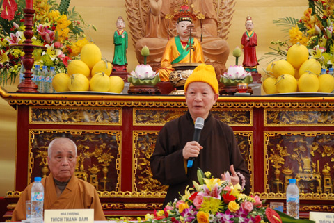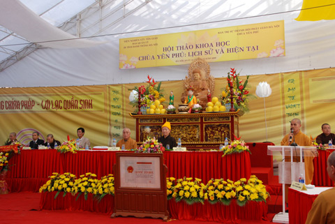 Ðến dự có: Hòa thượng Thích Thanh Tứ, Phó Chủ tịch Thường trực Hội đồng Trị sự Trung ương Giáo hội Phật giáo Việt Nam; PGS, TS Nguyễn Hồng Dương, Viện trưởng Viện nghiên cứu Tôn giáo (Viện Khoa học xã hội Việt Nam), đại diện Quốc hội, Ban Dân vận Trung ương, Học viện Chính trị- Hành chính Quốc gia, Bộ Công an… cùng đông đảo các nhà nghiên cứu, các bậc cao tăng và tăng ni, phật tử.