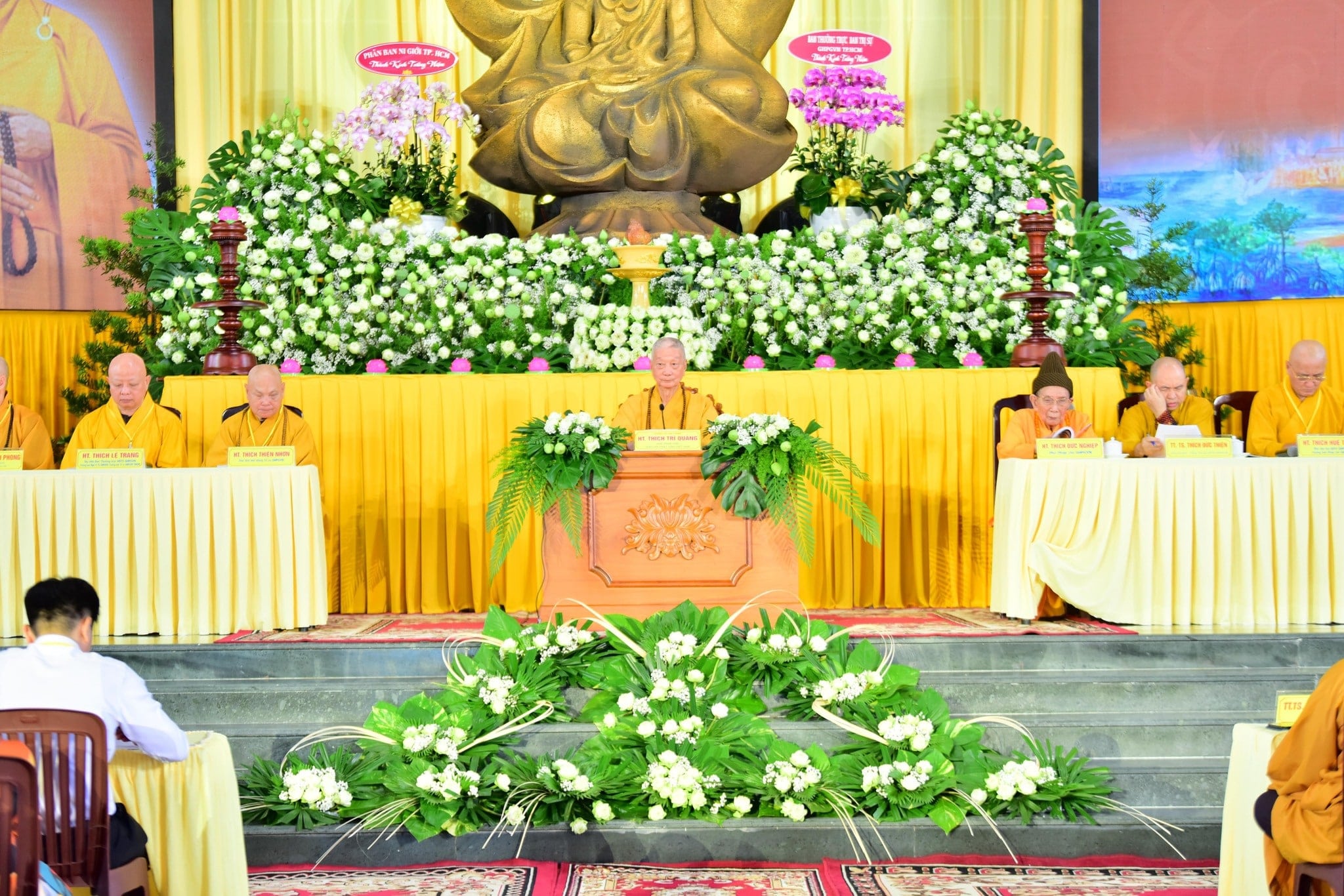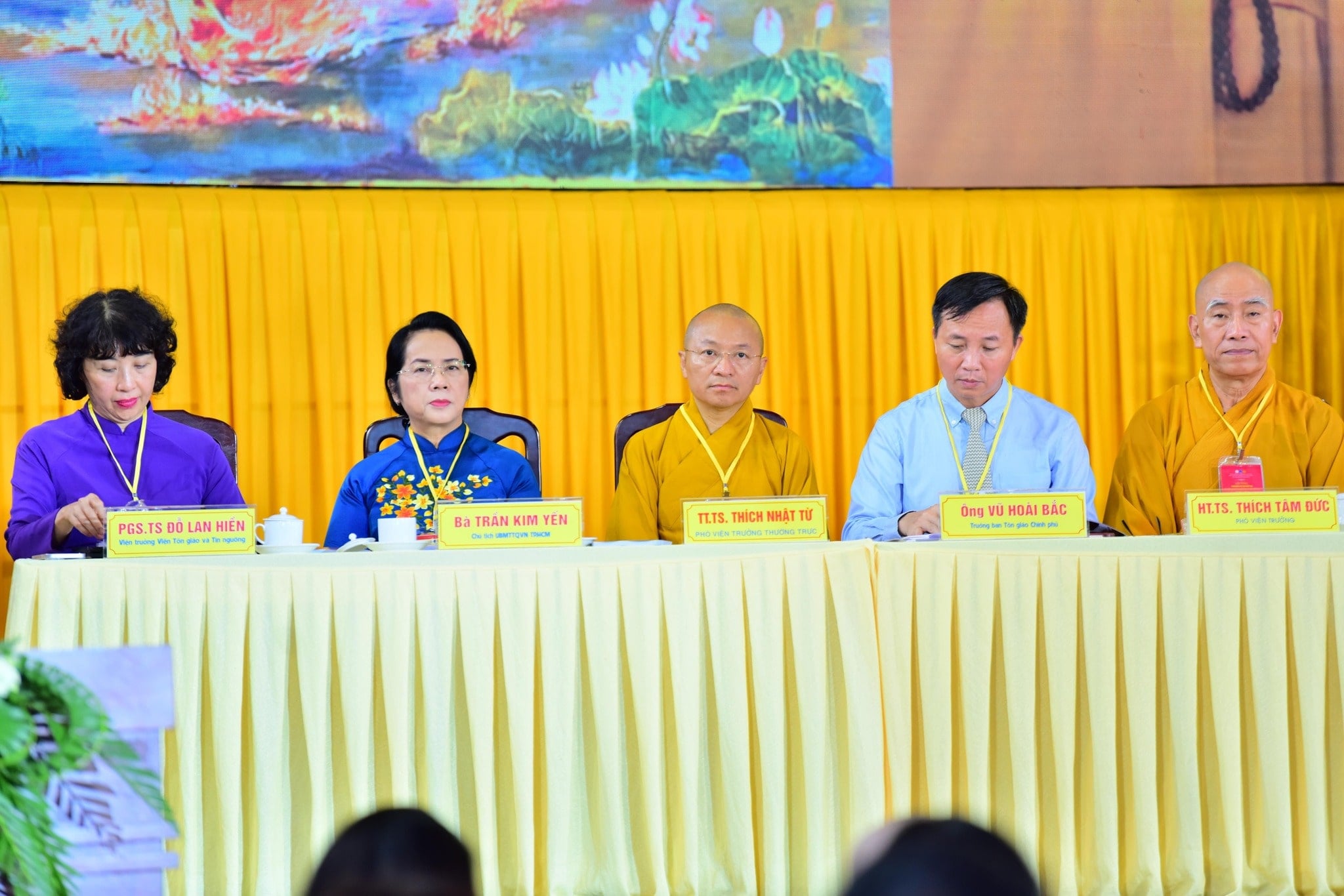Quang lâm chứng minh tham dự Lễ Khai mạc có Trưởng lão Hoà thượng Thích Trí Quảng, Pháp chủ HĐCM Trung ương GHPGVN, Viện trưởng Học viện Phật giáo Việt Nam TP.HCM; Trưởng lão Hoà thượng Thích Đức Nghiệp, Phó Pháp chủ kiêm Giám luật HĐCM; Trưởng lão Hòa thượng Thích Thiện Nhơn, Chủ tịch HĐTS; chư tôn đức Phó Chủ tịch HĐTS: HT. Thích Huệ Thông; TT. Thích Đức Thiện; TT. Thích Thanh Phong. Cùng tham gia còn có sự hiện diện của chư tôn đức Thường trực HĐTS, chư tôn đức lãnh đạo các Ban, Viện Trung ương, Văn phòng 2 và chư tôn đức Thường trực BTS GHPGVN Thành phố. Về phía đơn vị phối hợp tổ chức có HT. Thích Tâm Đức, Uỷ viên Thường trực HĐTS, Phó Viện trưởng Thường trực Viện NCPH Việt Nam; TT. Thích Nhật Từ, Uỷ viên Thường trực HĐTS, Phó Viện trưởng Thường trực Học viện Phật giáo Việt Nam TP.HCM, chư tôn đức Phó Viện trưởng, chư tôn đức thành viên Hội đồng Điều hành, lãnh đạo các phòng, khoa trực thuộc Học viện; PGS.TS Đỗ Lan Hiền, Viện Trưởng Viện Tôn giáo tín ngưỡng, Học viện Chính trị Quốc gia Hồ Chí Minh.