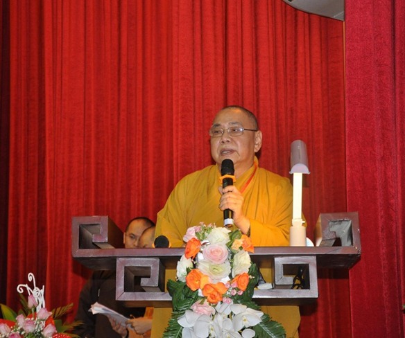 Tiến sĩ Bùi Hữu Dược-Vụ trưởng vụ Phật giáo Ban Tôn giáo chính phủ, thay mặt lãnh đạo chánh quyền phát biểu chúc mừng hội thảo.