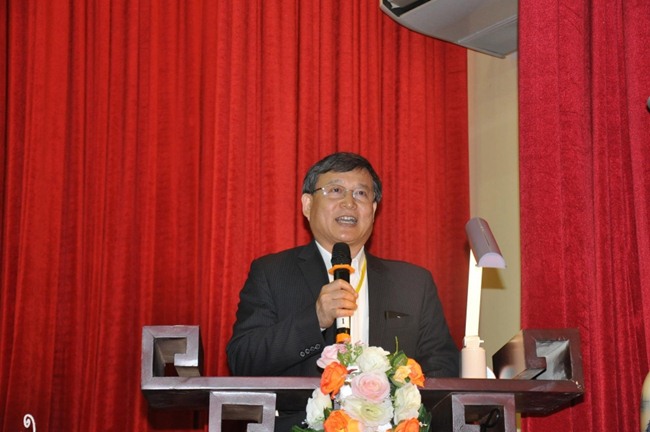 GS.TS Nguyễn Quốc Tuấn-Viện trưởng viện Tôn giáo trình bày tại hội thảo tham luận, chủ đề: Phác thảo phương pháp luận thống kê Tăng Ni và Tín đồ Phật giáo ở Việt Nam hiện nay. Sau đó, Giáo sư thay mặt chủ tọa đoàn điều phối chương trình hội thảo.