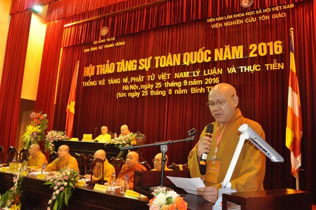 Hội thảo vinh dự được lắng nghe lời đạo từ của Hòa thượng Thích Thiện Nhơn-Chủ tịch Hội đồng Trị sự GHPGVN. Hòa thượng tổng kết lại công tác thống kê Tăng Ni, Phật tử của Giáo hội từ khi thống nhất Phật giáo năm 1981. Hòa thượng cũng chỉ ra nguyên nhân tăng và giảm của số lượng Tăng Ni, Phật tử. Đặc biệt, Hòa thượng cho biết số lượng tín đồ Phật tử Việt Nam như sau: Phật tử quy y là 16.232.064 vị, tín ngưỡng Đạo Phật là 38.376.355.