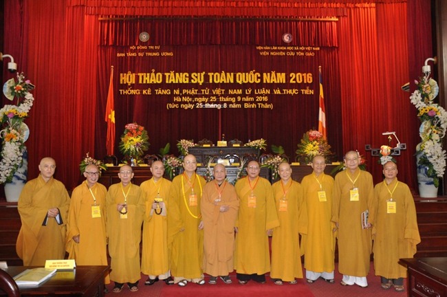 HT Thích Thanh Dũng-Phó Thư ký Hội đồng Chứng minh GHPGVN; HT Thích Thiện Nhơn-Chủ tịch Hội đồng Trị sự Giáo hội Phật giáo Việt Nam; HT Thích Thiện Pháp-Phó Chủ tịch Thường trực HĐTS, Trưởng ban Tăng sự TƯ, Trưởng ban Tổ chức Hội thảo; HT Thích Thanh Nhiễu-Phó Chủ tịch Thường trực HĐTS, Phó Trưởng ban Thường trực Ban Tăng sự TƯ; HT Giác Toàn, Thích Thiện Tâm, HT Thích Quảng Tùng, HT Thích Thiện Tánh, TT Thích Thanh Quyết, TT Thích Quảng Hà-Đồng Phó Chủ tịch HĐTS; HT Thích Minh Thông, HT Thích Giác Giới-Đồng phó Trưởng ban Tăng sự TƯ; TT Thích Thiện Thống-Phó Tổng Thư ký HĐTS kiêm Chánh văn phòng 2 TƯ; HT Đào Như, TT Thích Huệ Thông-Đồng Ủy viên Thư ký HĐTS; HT Thích Tấn Đạt-UVTT HĐTS, Phó Văn phòng 2 TƯ; HT Thích Minh Thiện-UVHĐTS, Phó Trưởng ban Hoằng pháp TƯ, Trưởng ban Trị sự GHPGVN tỉnh Long An; TT Thích Thanh Đạt-Viện trưởng Học viện PGVN tại Tp Hà Nội; cùng Chư tôn đức Tăng Ni Ban Tăng sự 63 tỉnh thành trong cả nước.