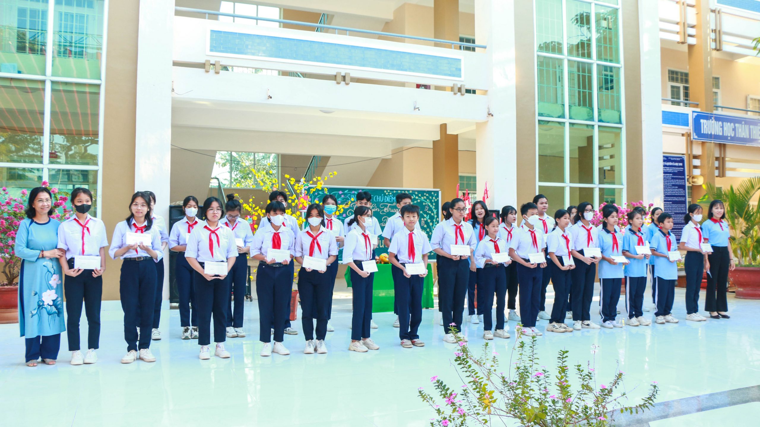 Dịp này, Cô Nguyễn Thị Mai –  Hiệu trưởng trường THCS NguyễnTrãi đã trao “Thư Cảm Ơn” cho Hội Từ Thiện Thiền Tôn Phật Quang. Thật vậy, bên cạnh việc siêng năng học hành để trở thành những người tài giỏi cho mai sau, thì đạo đức cũng là một yếu tố quan trọng để hình thành nhân cách của một nhân tài.