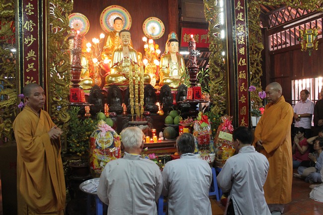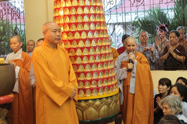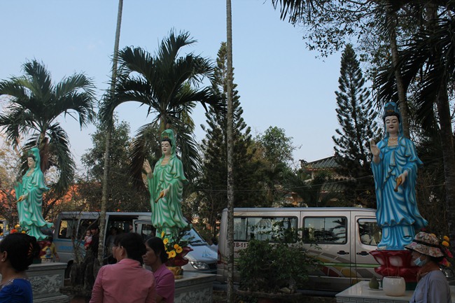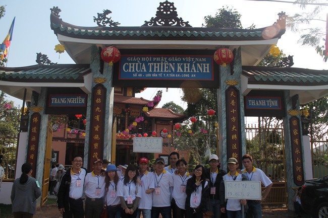 Với 20 xe lớn 45 chổ, 05 xe 16 chổ, 05 xe 7 chổ, 03 xe 04 chổ. Đoàn đã quang lâm kính đảnh lễ và cúng dường các tự viên như; 1. Chùa Phước Bảo – TT Bến Lức do cố TT. Thích Tắc Tựu – Nguyên Hiệu trưởng Trưởng TCPH Long An làm viện chủ. Hiện nay ĐĐ. Thích An Trung làm trụ trì, 2. Chùa Thiên Khánh, TX Tân An, do HT. Thích Thiện Huệ – Cố vấn Chứng minh Phật giáo Long An làm trụ trì, 3. Chùa Thiên Phước – do Ni trưởng Thích nữ Như Ngộ làm viện chủ, 4. Chùa Long Phước do ĐĐ. Thích Lệ Trí – UV HĐTS kiêm Chánh thư ký PG Tỉnh Long An làm trụ trì, 5. Tịnh xá Ngọc Tâm do Ni trưởng Thích nữ Kính Liên làm viện chủ, 6. chùa Thiên Châu do HT. Thích Minh Thiện – UV HĐTS, Trưởng BTS PG Long An làm trụ trì, 7.chùa Kim Cang , trú xứ an cư kiết hạ của chư tăng PG tỉnh Long An do HT. Thích Tắc Ngộ – Phó BTS GHPGVN tỉnh Long An Làm trụ trì, 8. Chùa Tôn Thạnh, di tích lịch sử cấp Quốc gia do HT. Thích Đạt Đồng – TV HĐCM làm viện chủ, 9, Chùa Pháp Tam do Ni sư Thích nữ Như Học làm trụ trì, 10. Chùa Long Hoa do Ni trưởng Thích nữ Như Vân làm trụ trì.
