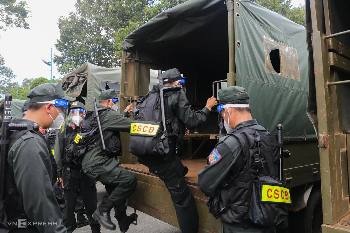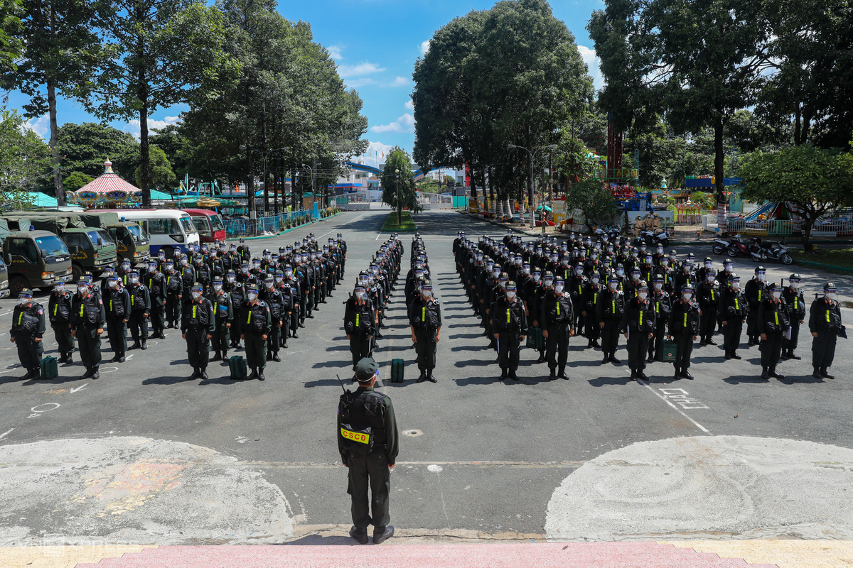 310 chiến sĩ từ ba Tiểu đoàn ở Đăk Lăk, Gia Lai, Lâm Đồng (thuộc Trung đoàn Cảnh sát cơ động Tây Nguyên) đến TP Thủ Đức từ tối 21/8, được ôtô chở đến 12 chốt kiểm soát giáp ranh giữa TP HCM với các tỉnh: Long An, Bình Dương, Đồng Nai và Tây Ninh để làm nhiệm vụ.
