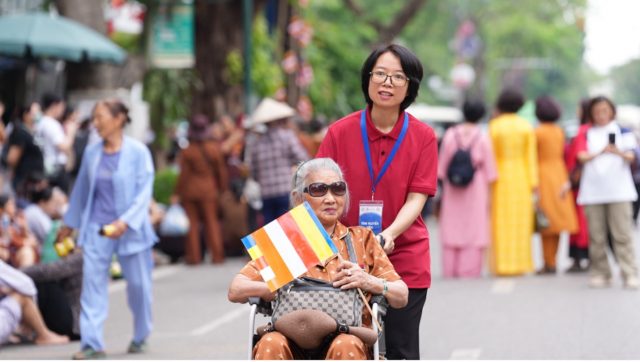 Dưới thời tiết oi nóng của hai ngày đầu tiên Lễ cung rước và chiêm bái Xá lợi Đức Phật – Quốc bảo Ấn Độ trong khuôn khổ Đại lễ Vesak 2025 tại chùa Quán Sứ Hà Nội. Hàng trăm tình nguyện viên từ các đội nhóm phải làm việc liên tục từ sáng sớm đến xuyên đêm để hỗ trợ hàng vạn nhân dân, Phật tử từ khắp mọi miền Tổ quốc tới chiêm bái mỗi ngày.