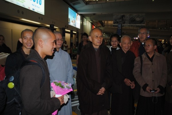 Cánh hoa thứ Năm ấy đã bắt đầu hé nở tại phi trường Hong Kong. Ngay khi Sư Ông và Tăng đoàn vừa đặt chân xuống mặt đất đã có Hòa thượng Minh Cảnh, Thượng tọa Tịnh Nhân – Giám đốc Trung tâm Phật giáo tại Đại học Hongkong, Thượng tọa Hin Hun, Linh mục Kwang, và rất đông quý thầy, sư cô Làng Mai Hongkong chào đón rộn ràng trong tiếng hát “Đã về, đã tới” bằng tiếng Việt, tiếng Anh, tiếng Hoa Quang Thoại, và tiếng Hoa Quảng Đông.